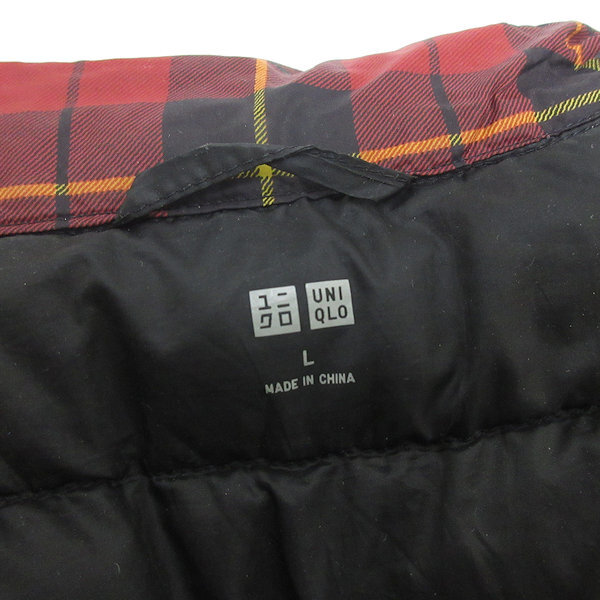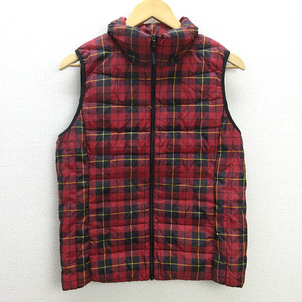 U■ユニクロ/UNIQLO ウルトラライトダウンベスト/チェック柄【L】赤/LADIES/s64【中古】■