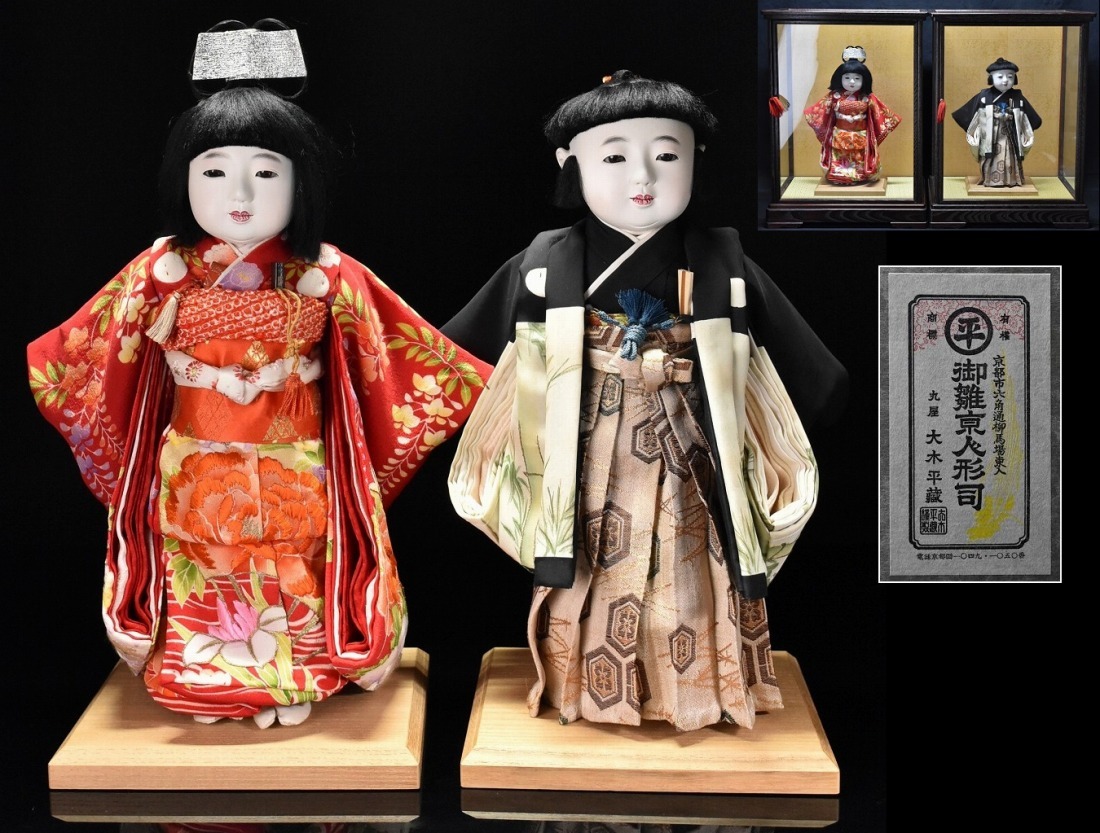 京都 丸屋 大木平蔵 丸平 御雛京人形司 市松人形 男女 ガラスケース 着せ替え人形 抱き人形