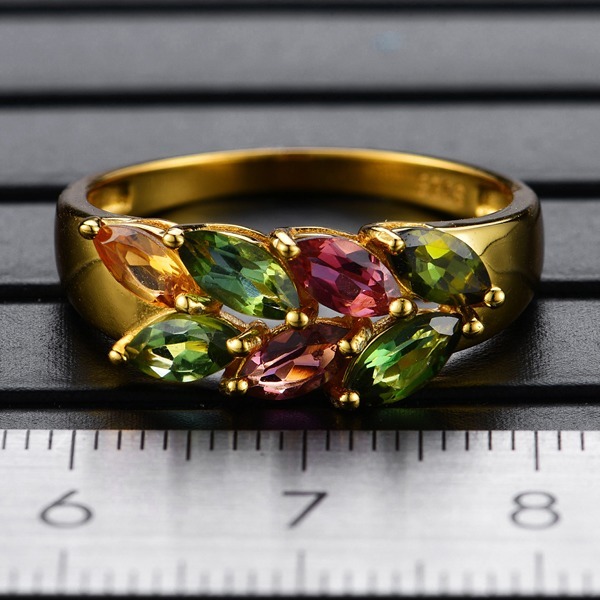 天然トルマリンを使用した925シルバーリング 、3×6mm、925 スターリングシルバー、ファッションジュエリー