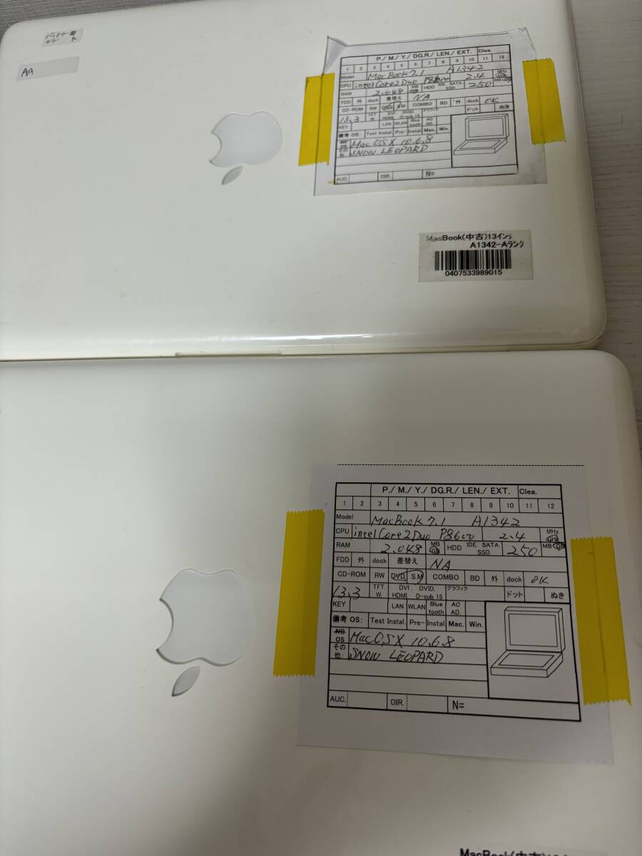2台まとめ売り アップル Apple MacBook A1342 INTEL CORE 2 DUO P8600 2.4GHz/HDD500GB/メモリ2GB/DVD/13.3型/Mac OS X