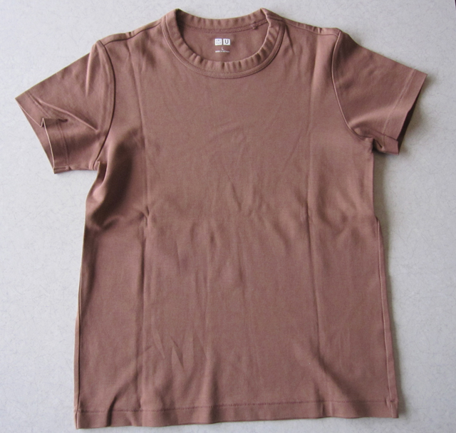 ユニクロ UNIQLO 半袖 Tシャツ 綿 100%  茶色 ブラウン 無地 Lサイズ レディース