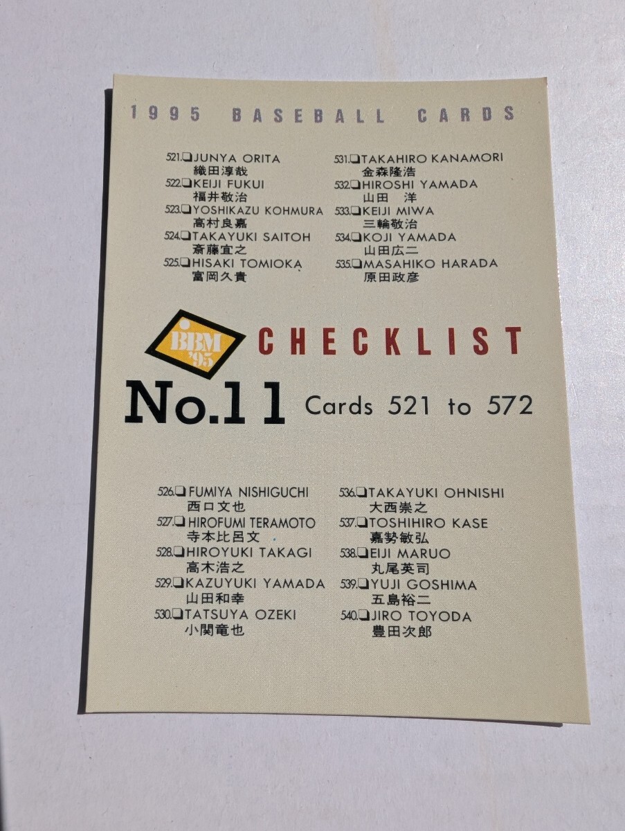 チェックリストNo.11 1995BBM572 今後入手困難なカードとなります。 自宅保管しておりましたが、コレクション整理のため出品します。 尚、当方仕事の都合により商品発送は土日になりますのでご理解をお願い申し上げます。 ※他にも野球カード多数出品中です! 是非他の商品もご覧下さいませ♪ |