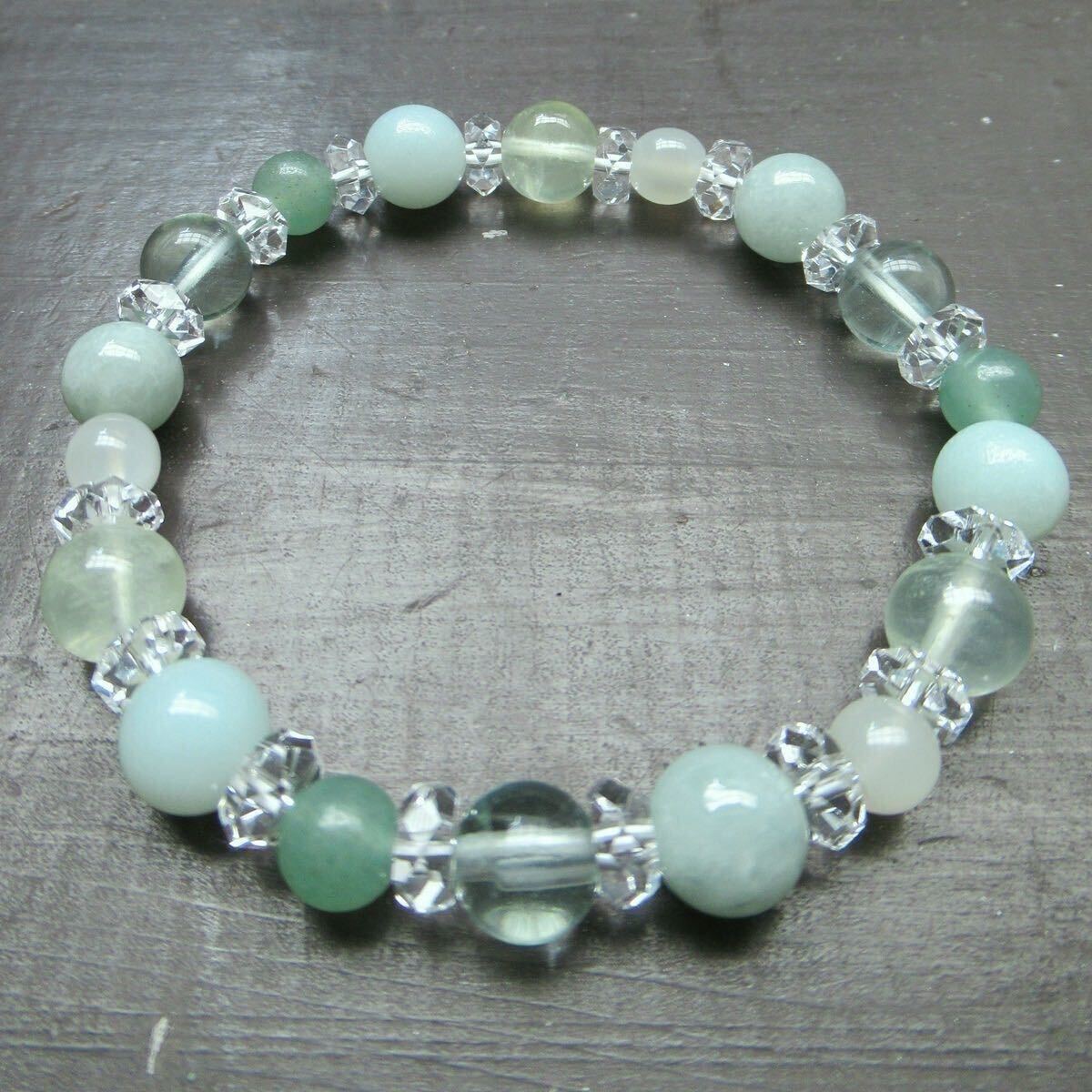 本翡翠xアマゾナイトxプレナイトxフローライトブレスレット 天然石 パワーストーン