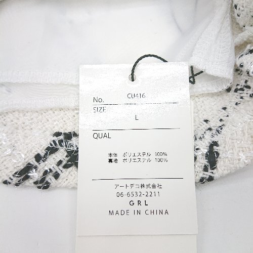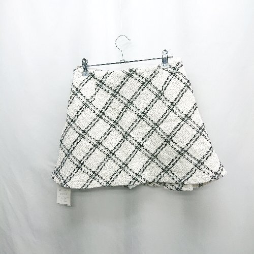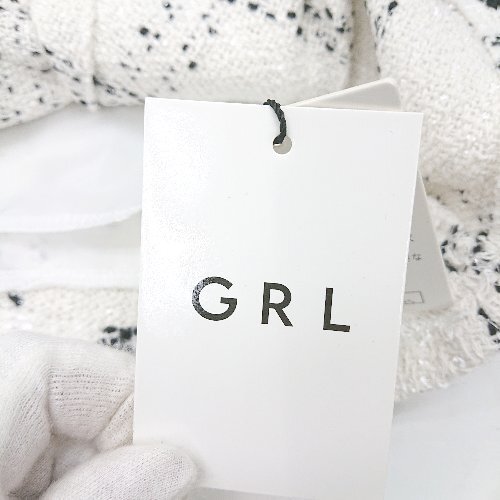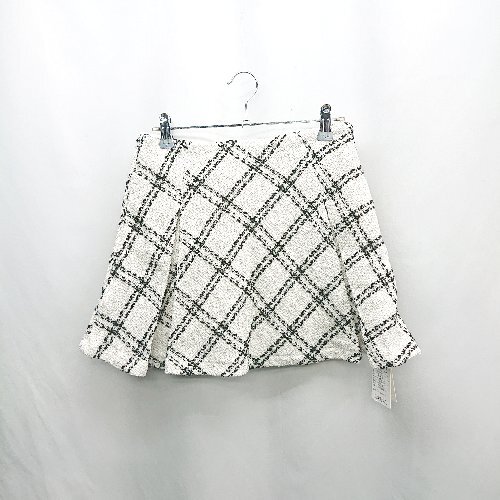 ◇ ⊇ ◎ ●未使用● GRL グレイル ツイード生地 ミニ フレア スカート サイズL ホワイト ブラック レディース E