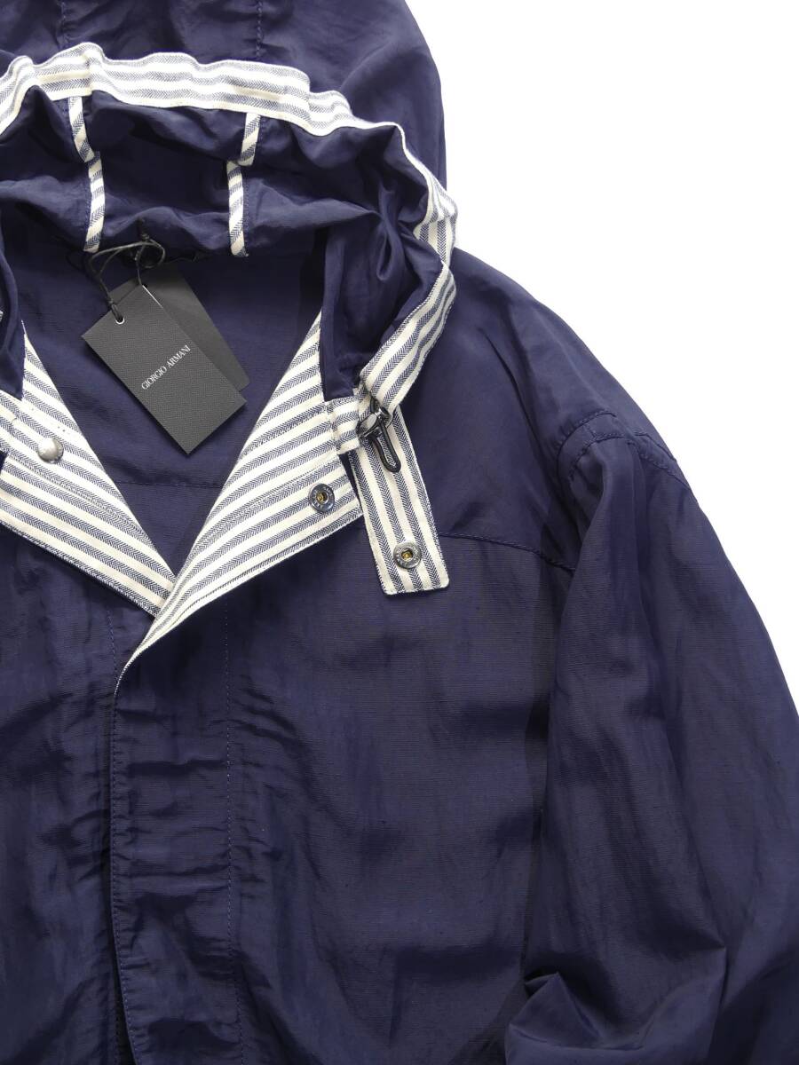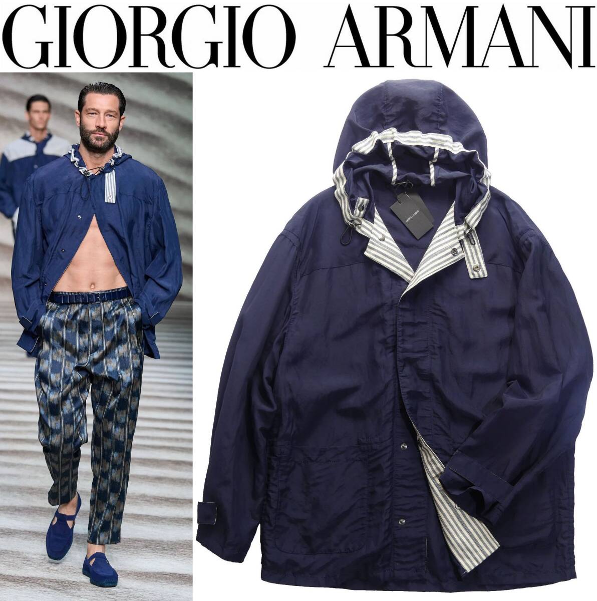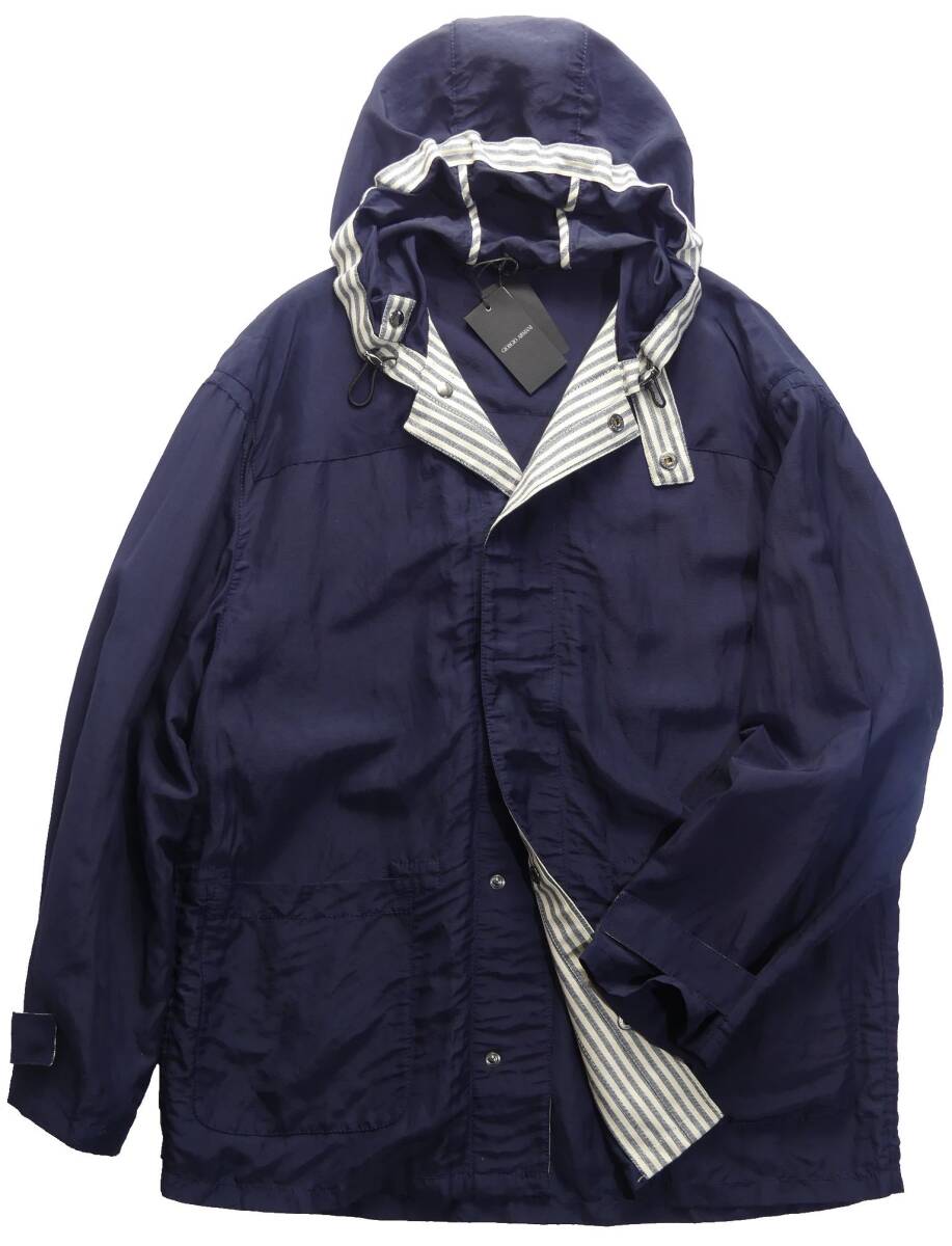 春夏秋505,000円新品GIORGIO ARMANI★貴重コレクションピース。清涼感◎フィールド風濃紺フードジャケット【54=日本2~3XL】