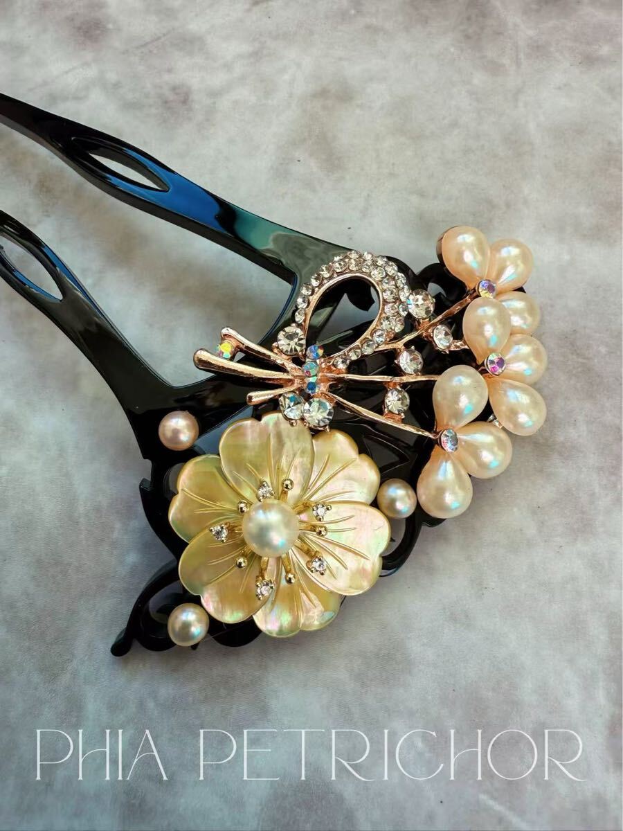 ^ ^細部まで拘った美しいバチ型簪成人式、卒業式 や結婚式などの華やかなシーンにぴったりのかんざしです()丁寧な作り込みがしてあるので、高級感があります。(☆☆)