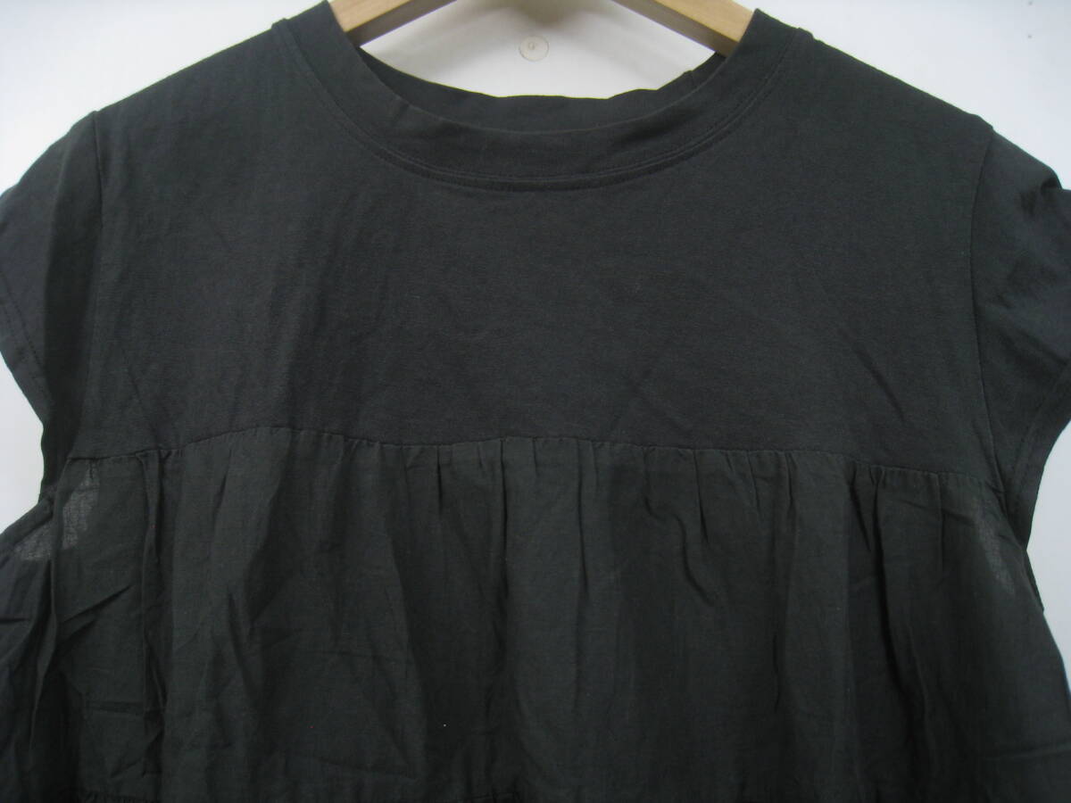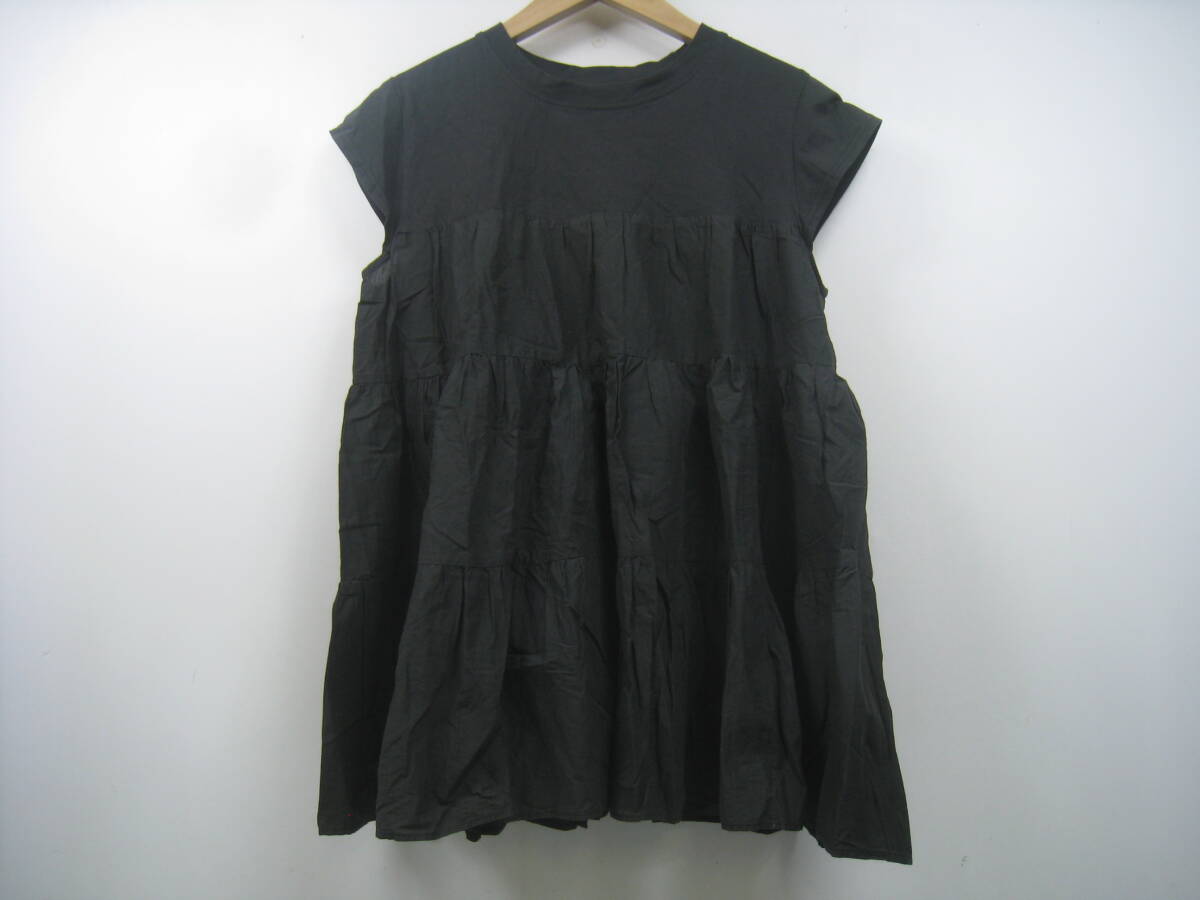 RODEO CROWNS ロデオクラウンズ チュニック 切替 ギャザー カットソー 黒 ブラック サイズFREE