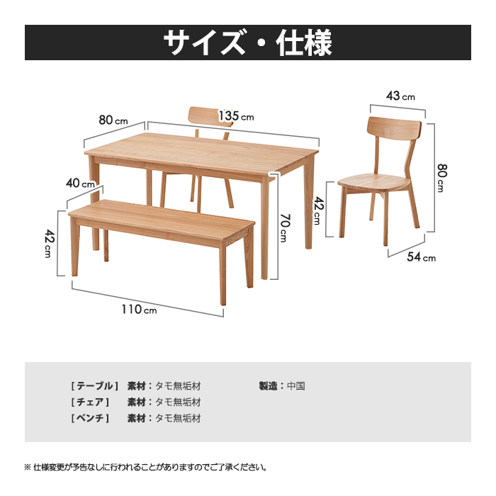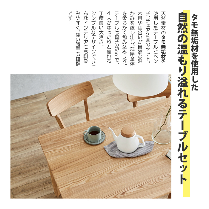 特  徴タモ無垢材を使用したダイニングテーブルセット。