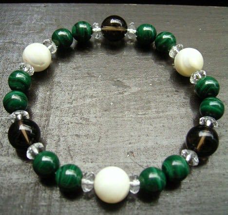孔雀石xスモーキークォーツx白蝶貝ブレスレット 天然石 パワーストーン