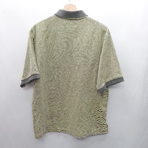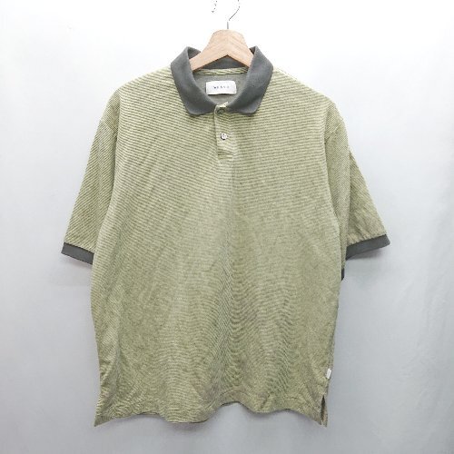 ◇ ⊂ WHIMSIC ボーダー柄 半袖 ポロシャツ サイズF ライトグリーン グレー系 メンズ E