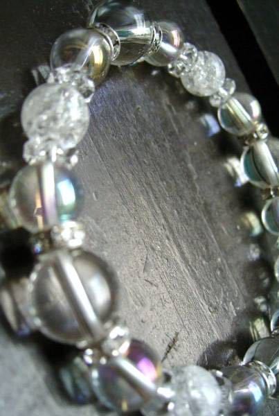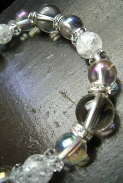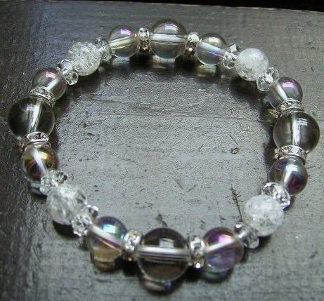 水晶xアクアオーラxクラック水晶ブレスレット 天然石 パワーストーン