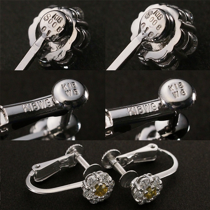 サファイア/0.08ct×2 ダイヤ/0.18ct×2 フラワー デザイン イヤリング K18WG