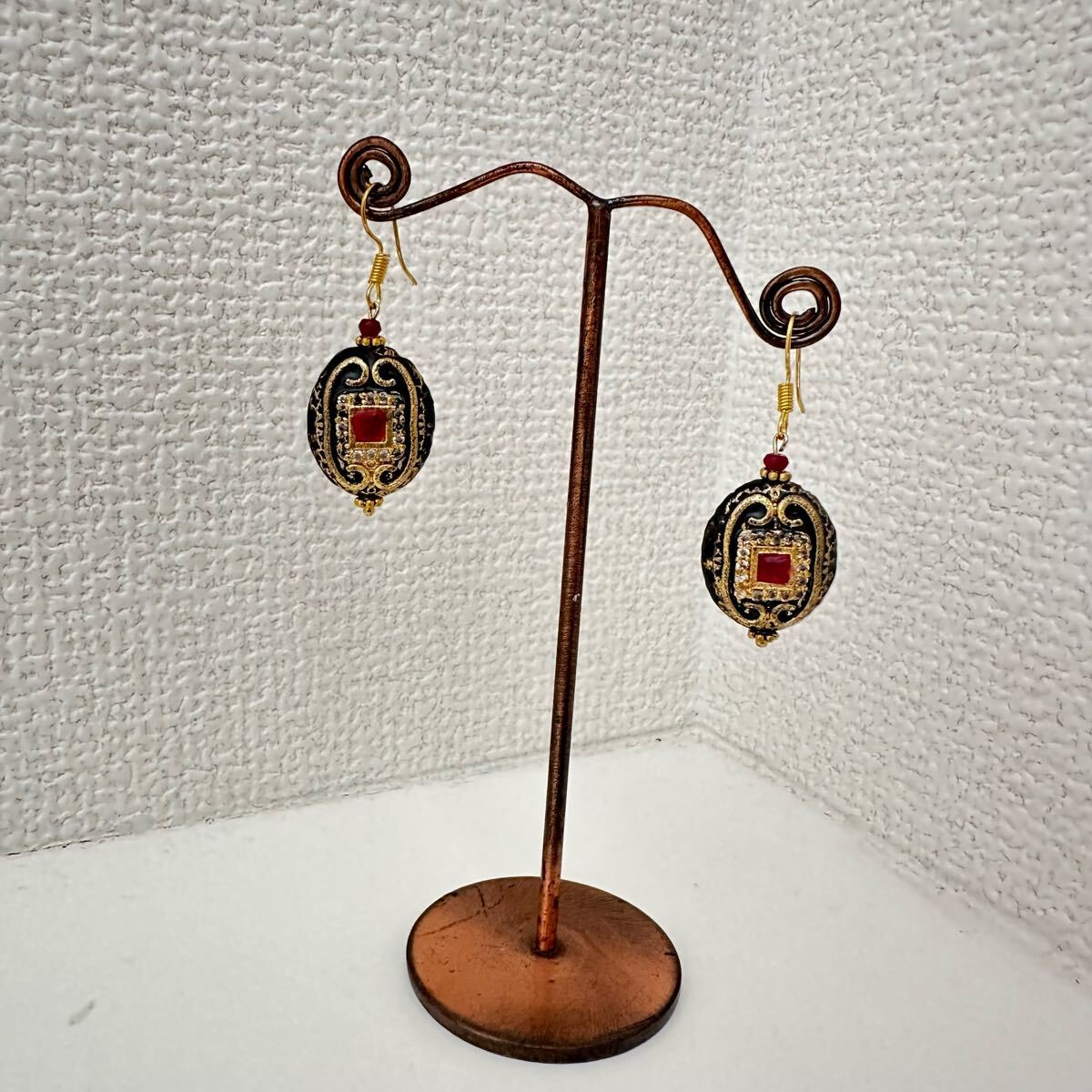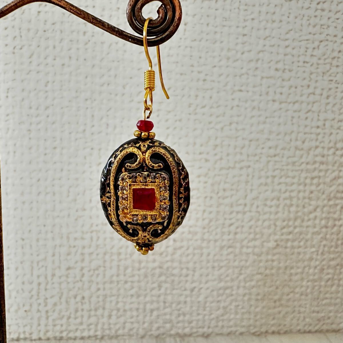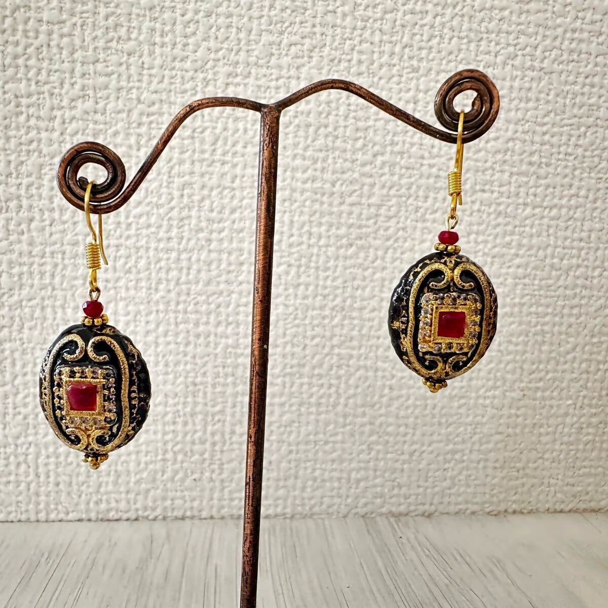 ネパールの職人さんが1つ1つ手作りで作っているチベット、ネパールの伝統的なデザインのエレガントピアスです。
