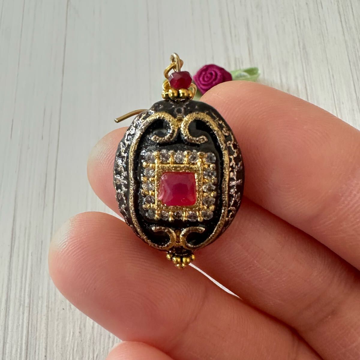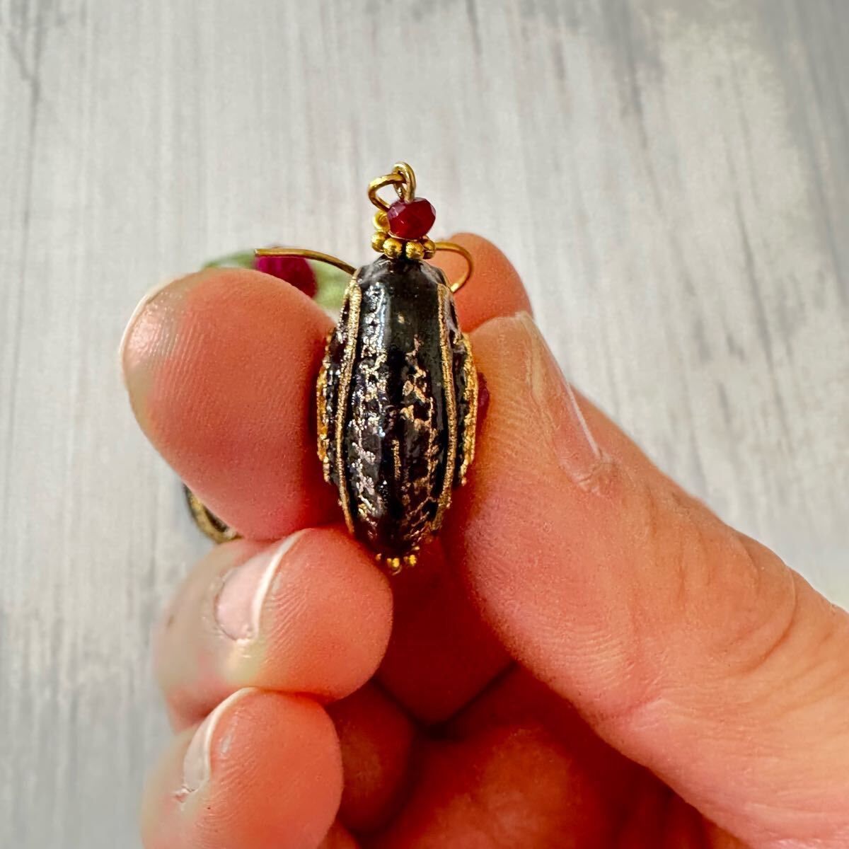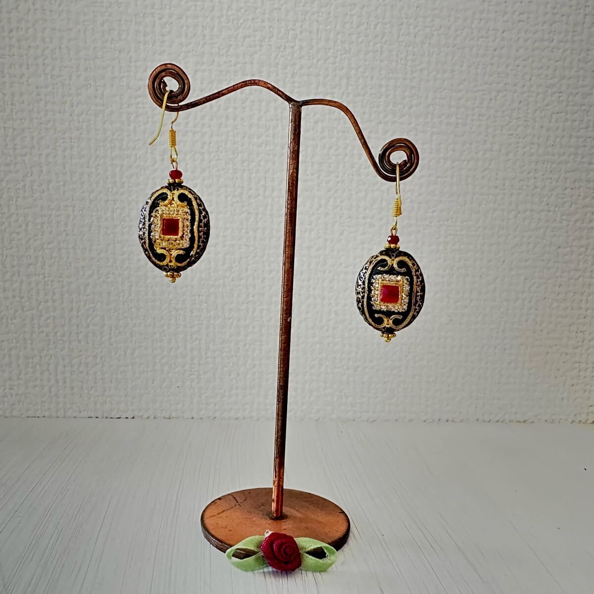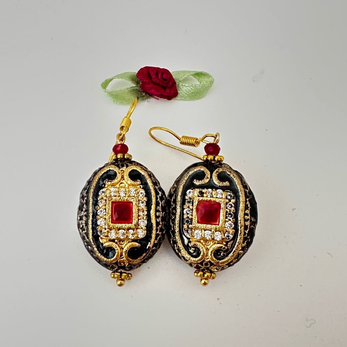 ネパールの職人さんが1つ1つ手作りで作っているチベット、ネパールの伝統的なデザインのエレガントピアスです。