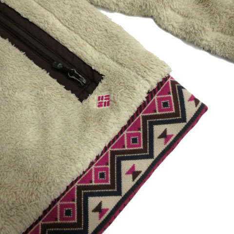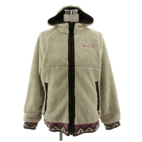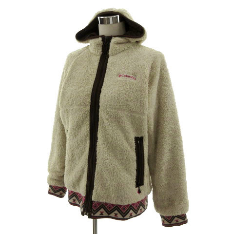 コロンビア Columbia ジャケット フリース ボア PL3979 ロゴ刺繍 ジップアップ ベージュ ブラウン系 茶系 L レディース