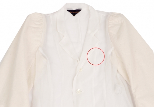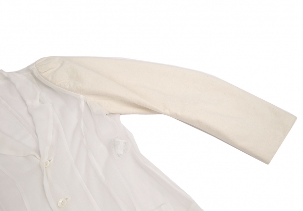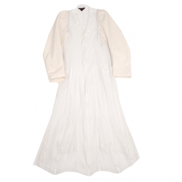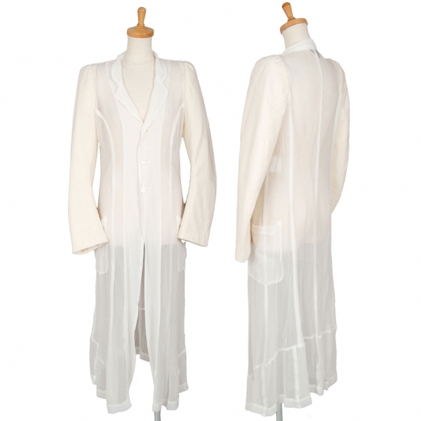 コムデギャルソンCOMME des GARCONS袖異素材切替シフォンシースルーロングジャケット 白生成りM |