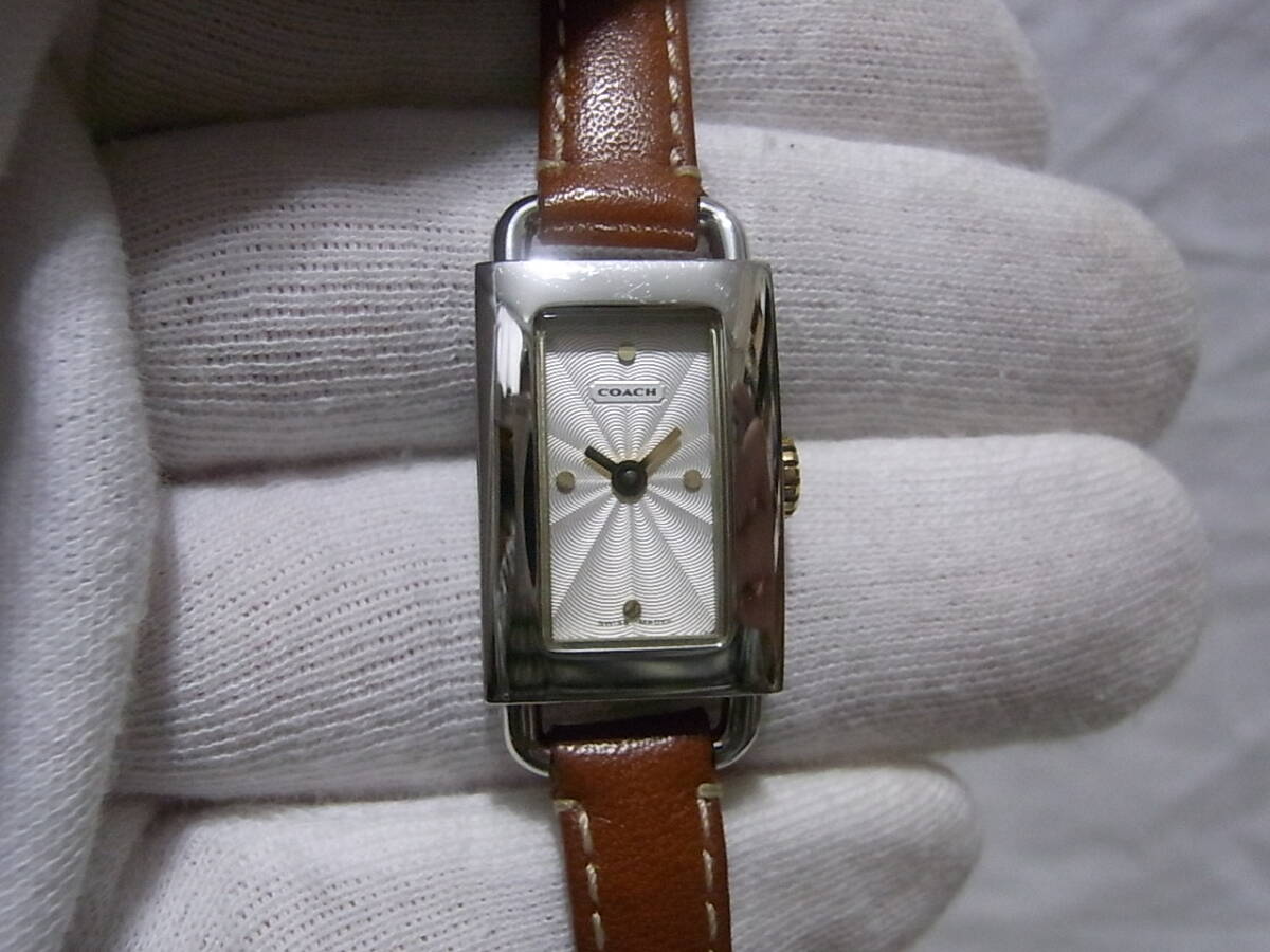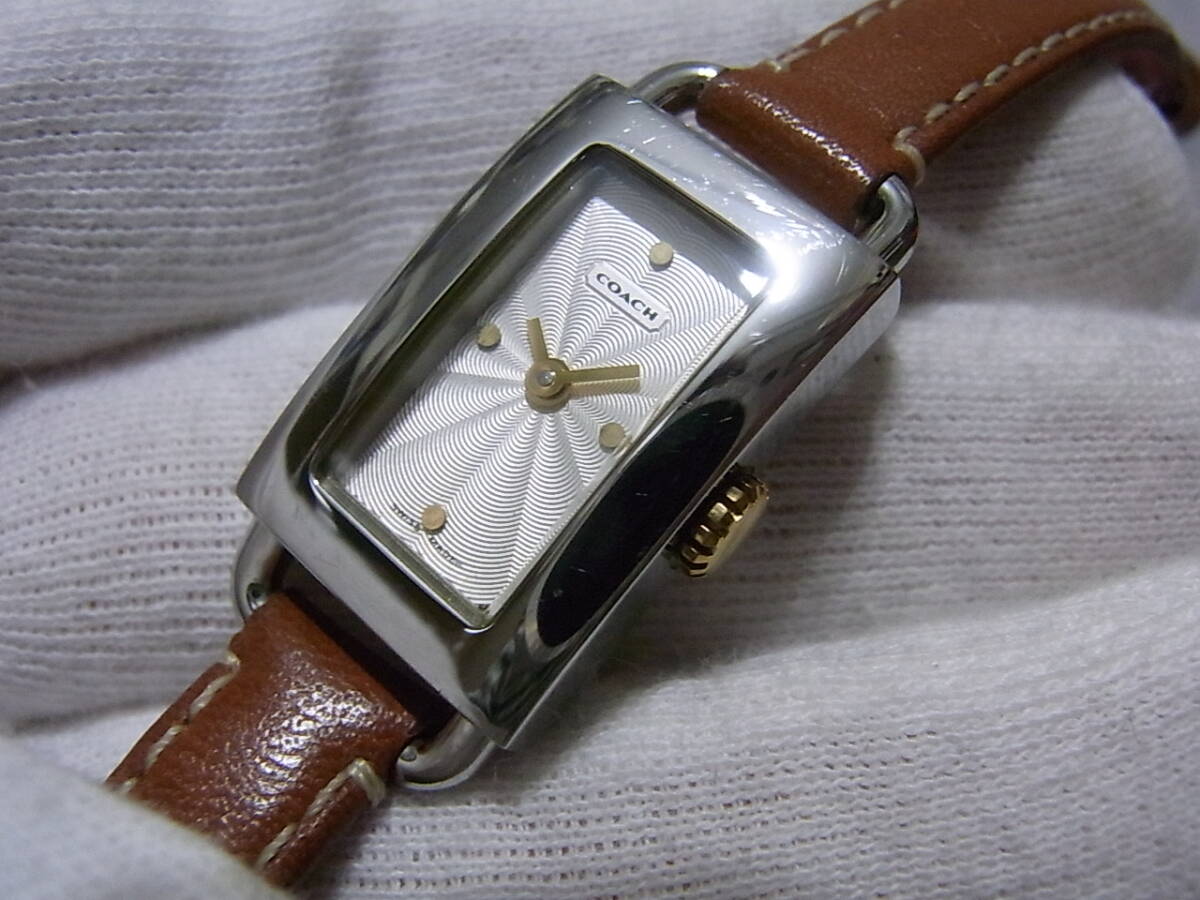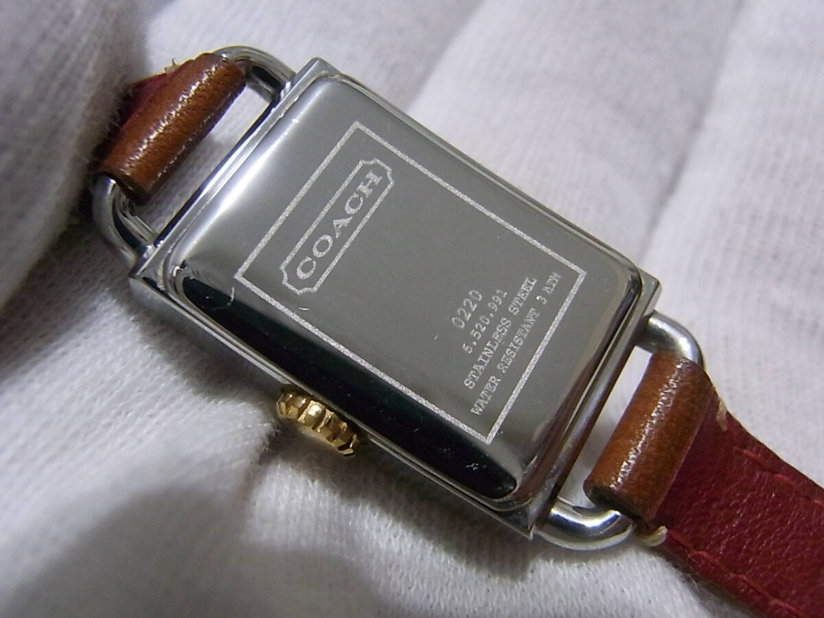●現状品 COACH 0220 6.520.991 コーチ レクタングル アナログ クォーツ 腕時計【中古ジャンク品】