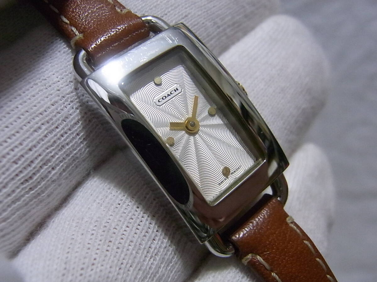 現状品 COACH 0220 6.520.991 コーチ レクタングル アナログ クォーツ 腕時計【中古ジャンク品】