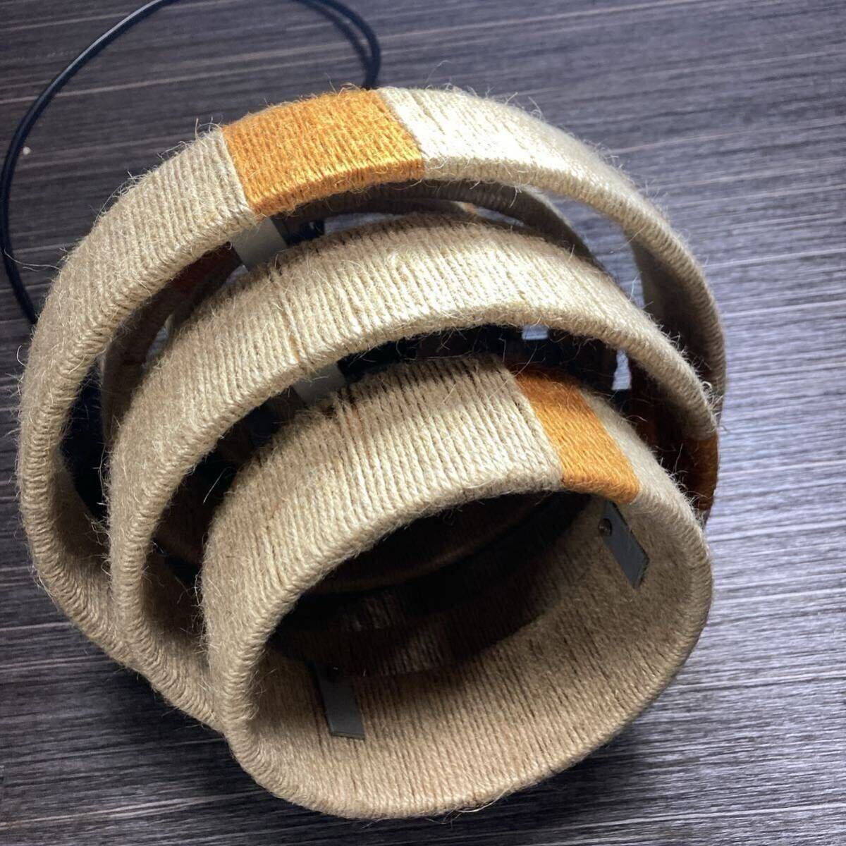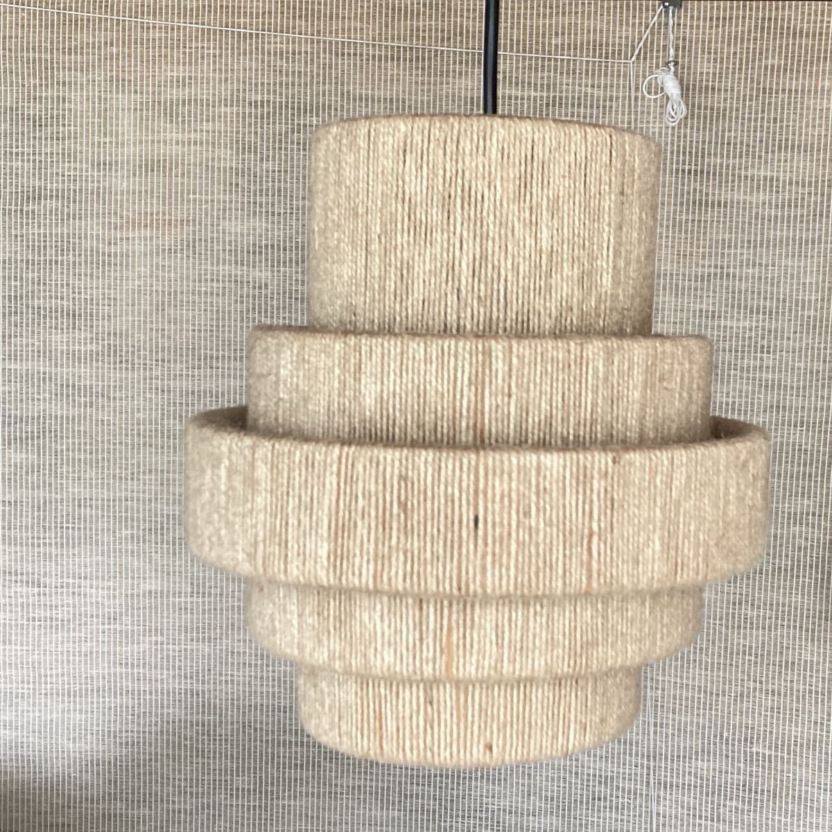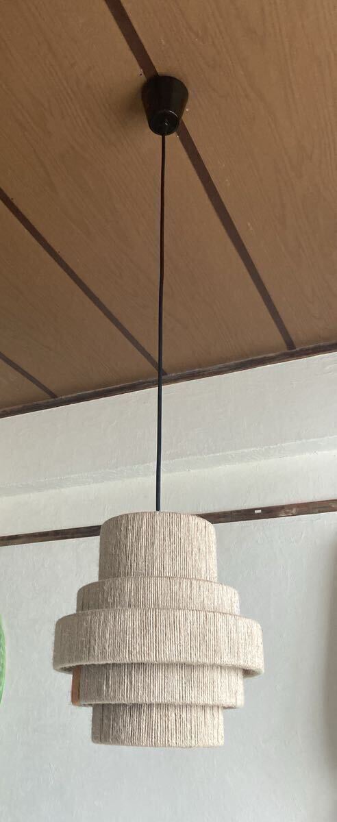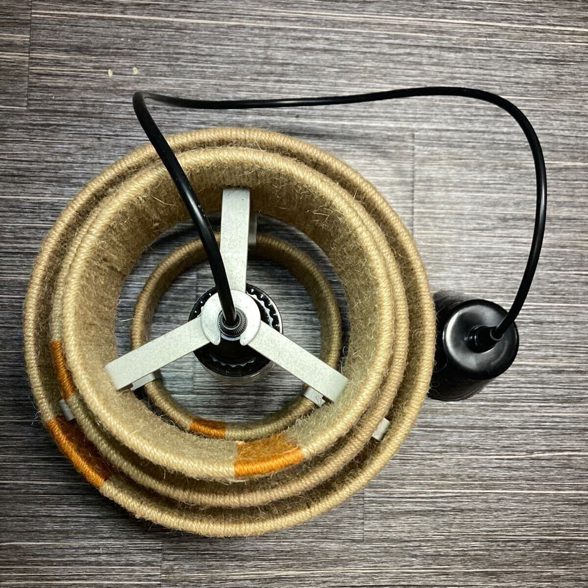 レトロなペンダントライトのセード(かさ)をベースに、ジュートを巻いて素材感のある照明にアップサイクルしました。
