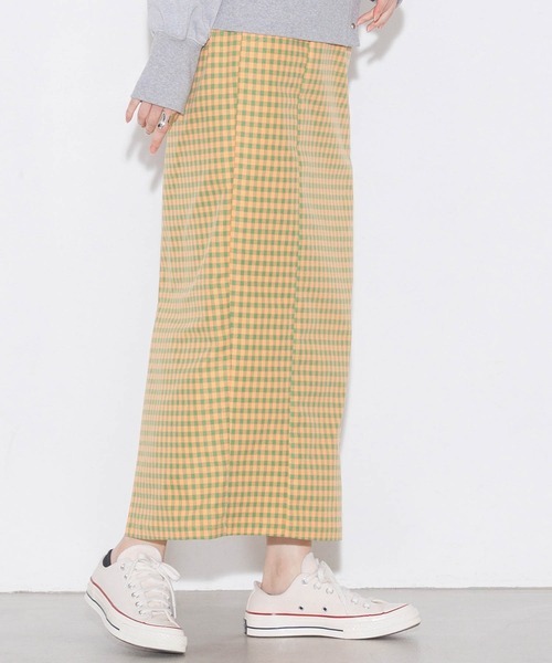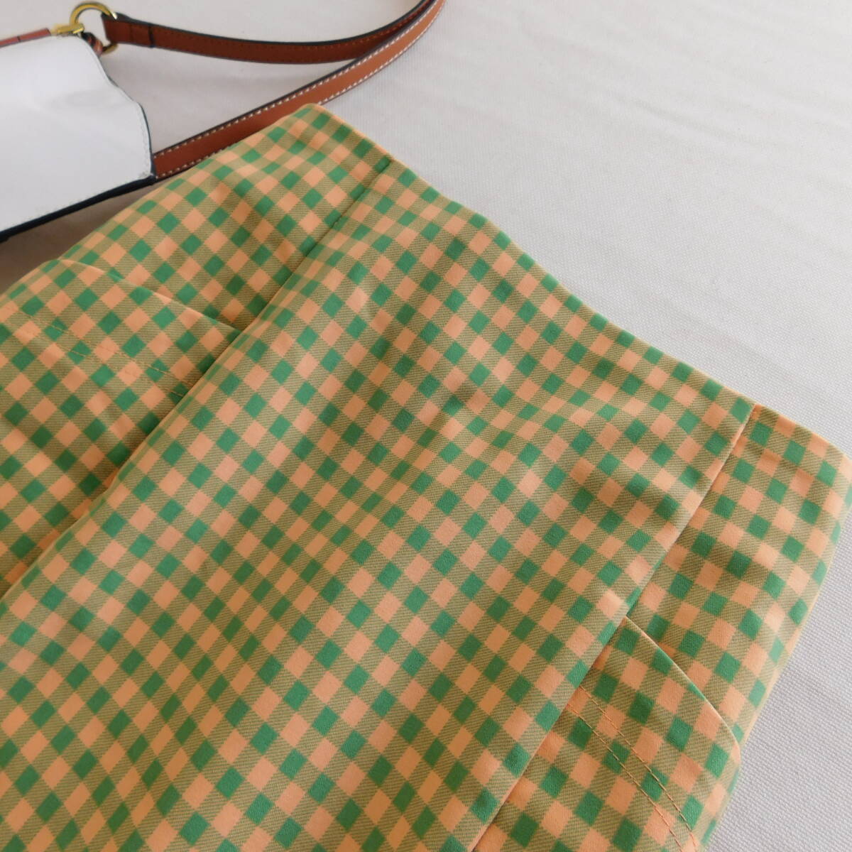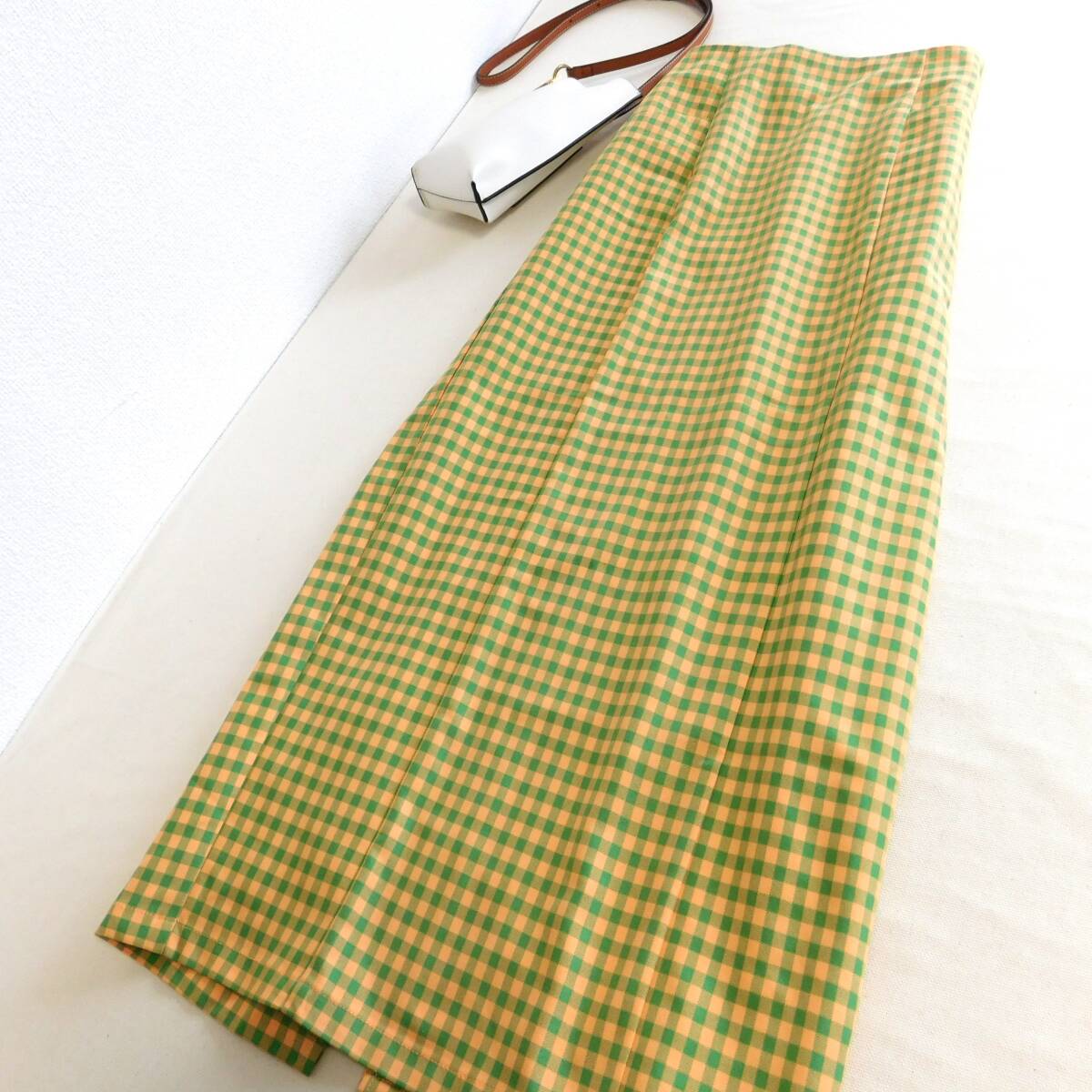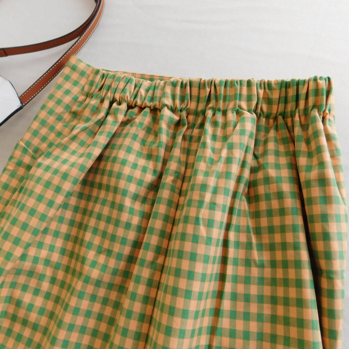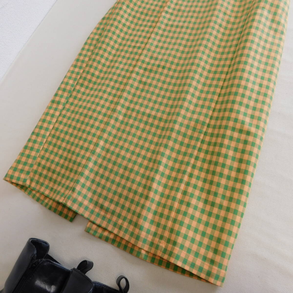 オレンジイエロー系とグリーンカラーのギンガムのロングのタイトスカートがかわいいです(#^^#)