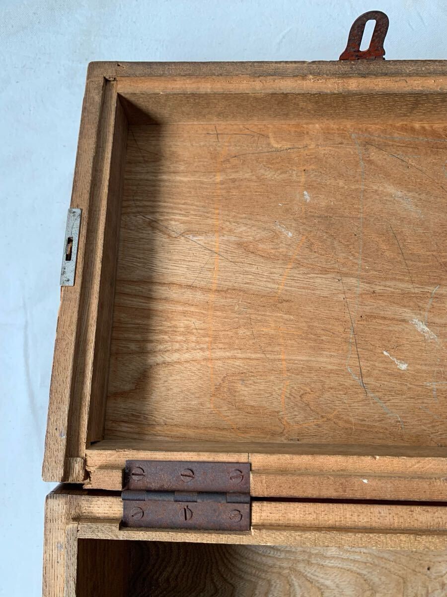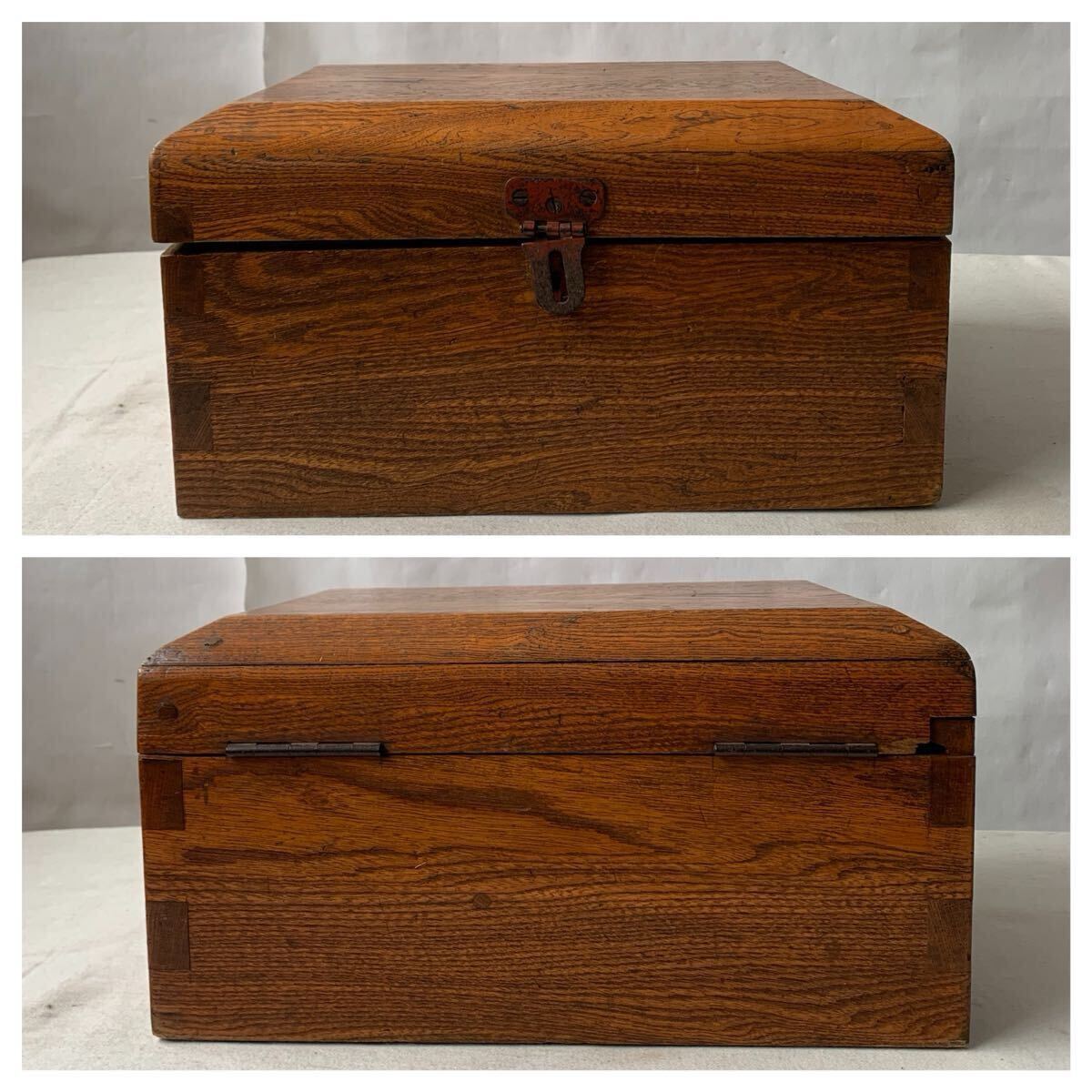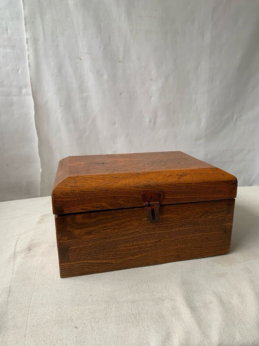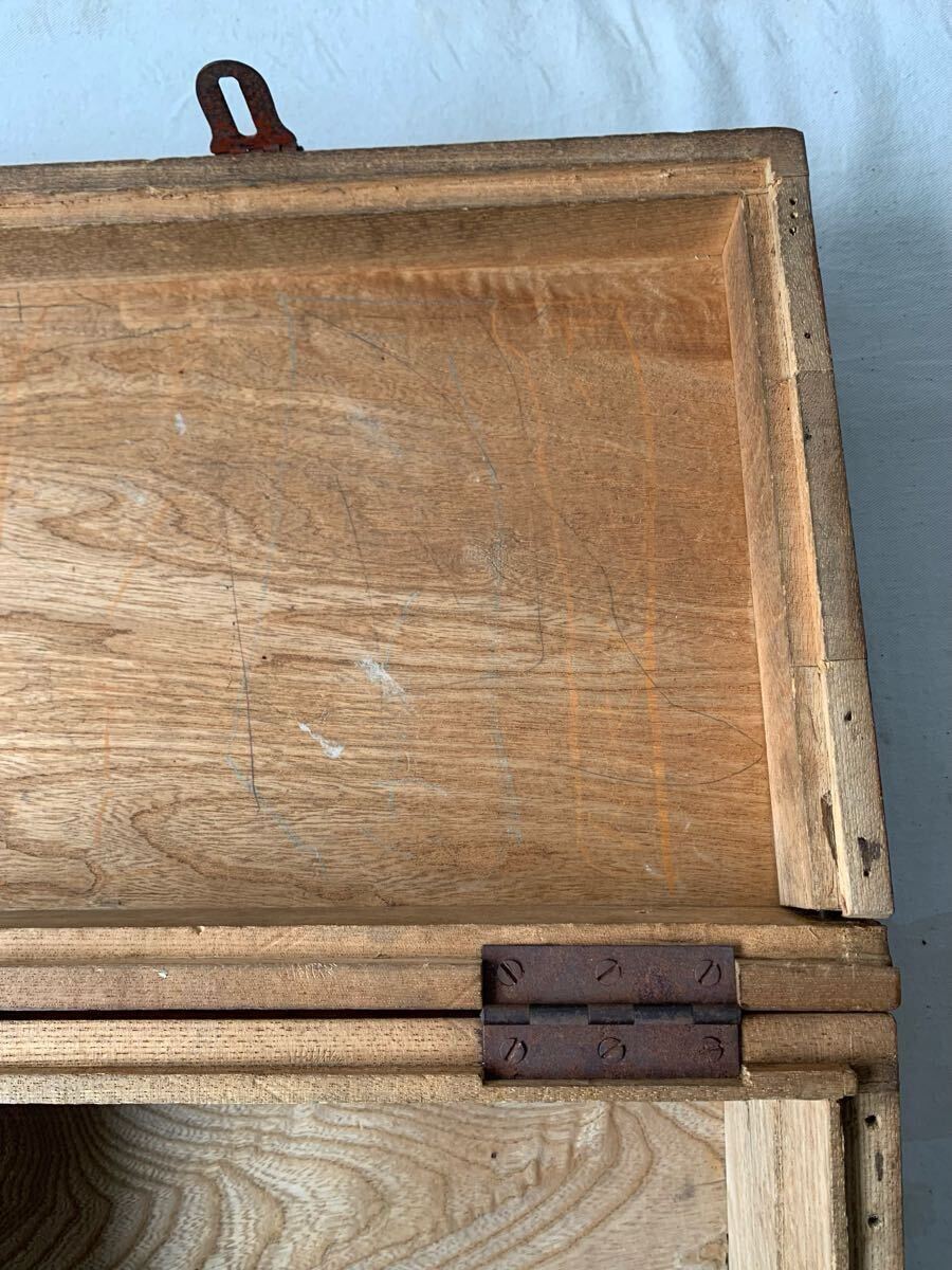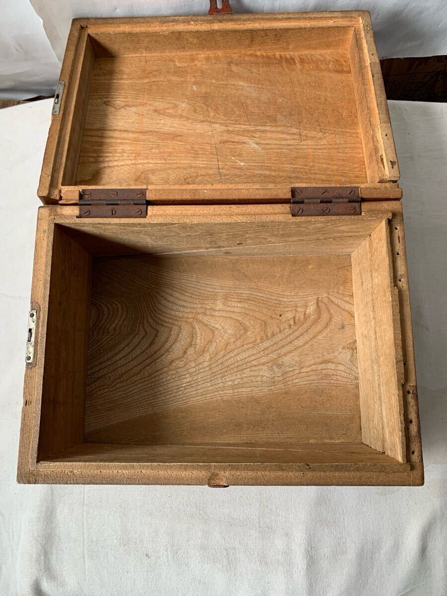 木目が綺麗な蓋付の古い木箱です。しっかりした造りで、小物などを収納するお部屋のインテリアやお店のディスプレイ、イベント出店時の什器などに使って頂くと素敵だと思います。