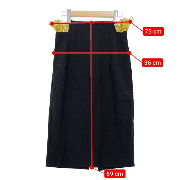 実寸法 | スカート実寸 ウエスト:75(レース部分含)cm 総丈:69cm |