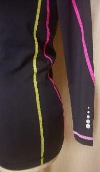 カラー | 黒地に濃淡ピンクとイエローのステッチライン |