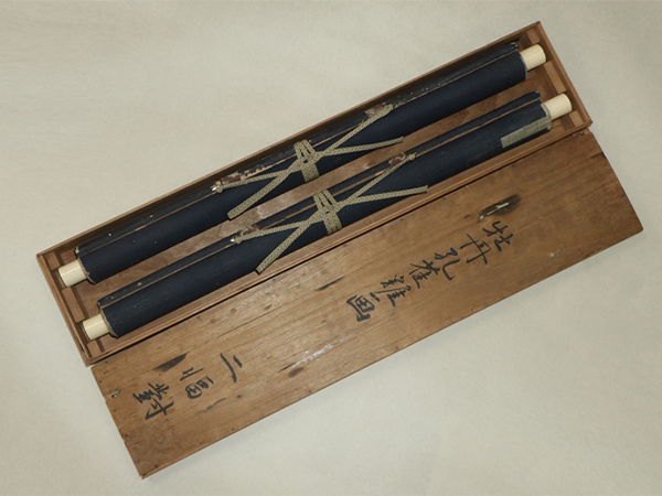 円山応挙 まるやま-おうきょ(1733-1795) 江戸後期の画家。円山派の祖。丹波生。 字は僊斎・仲選、号は一嘯・夏雲・仙嶺等、通称は主水。 石田幽汀に狩野派の画法を学び、幽汀の写生的画法に、 宋・元画の技法を取り入れると共に、西洋画の遠近法を研究して一家を成した。 動植物の写生を最も能くする。寛政7年(1795)歿、63才。 本紙は、染み、汚れ、軽い折れ、軽い浮き皺、ヤケ、擦れ、剥落があります。 表装は、染み、汚れ、折れ、皺、虫食い、破れ、ほつれ、生地剥れ、修理痕、ヤケ、 くすみ、擦れ、軽い反り、軸先に汚れと小傷、箱に傷みと焼け痕があります。 【サイズ】 作品 横約50.5cm×縦約107cm 表装 横約64cm×縦約190cm |