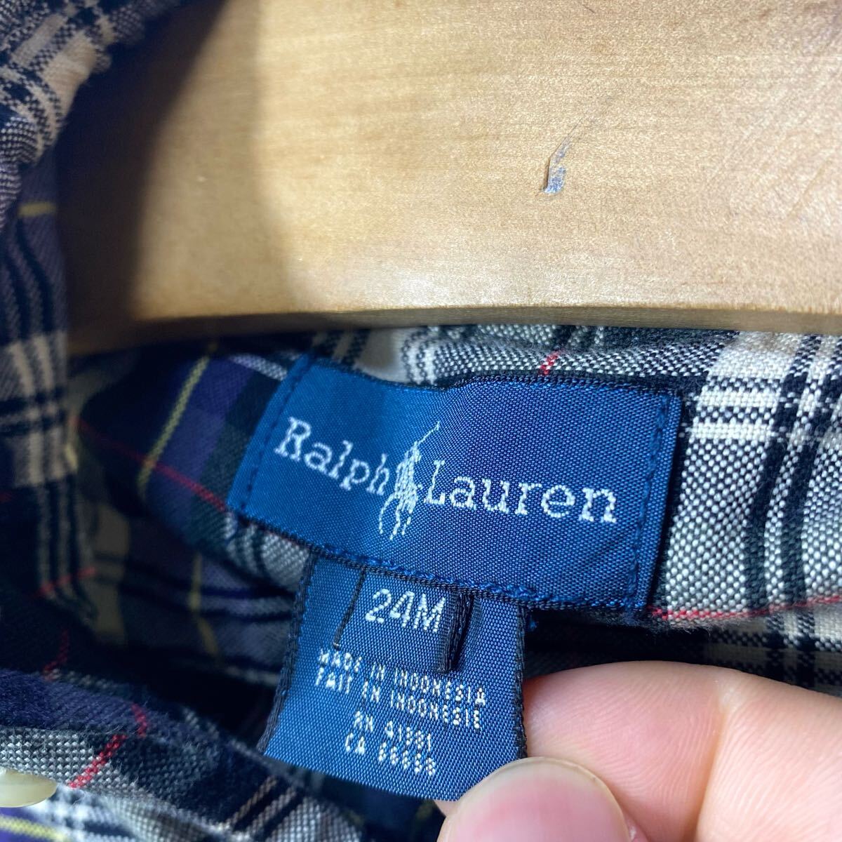 ■ 子供用 ビンテージ Ralph Lauren ラルフローレン 刺繍ロゴ ポニー チェック柄 長袖 ボタンダウン シャツ 24M アメカジ トラッド ■