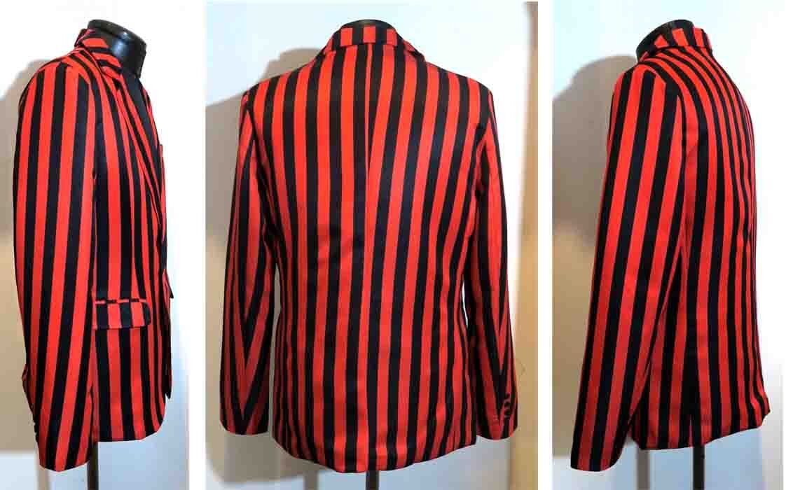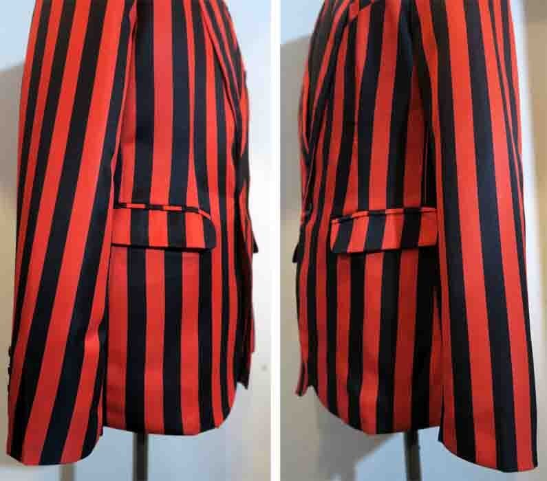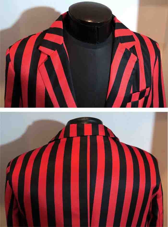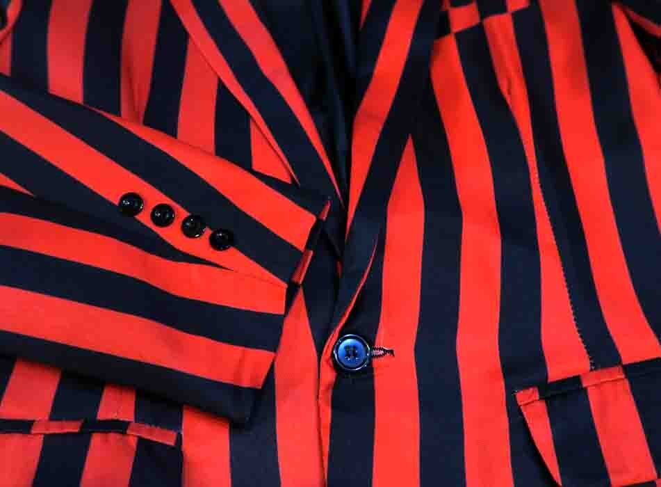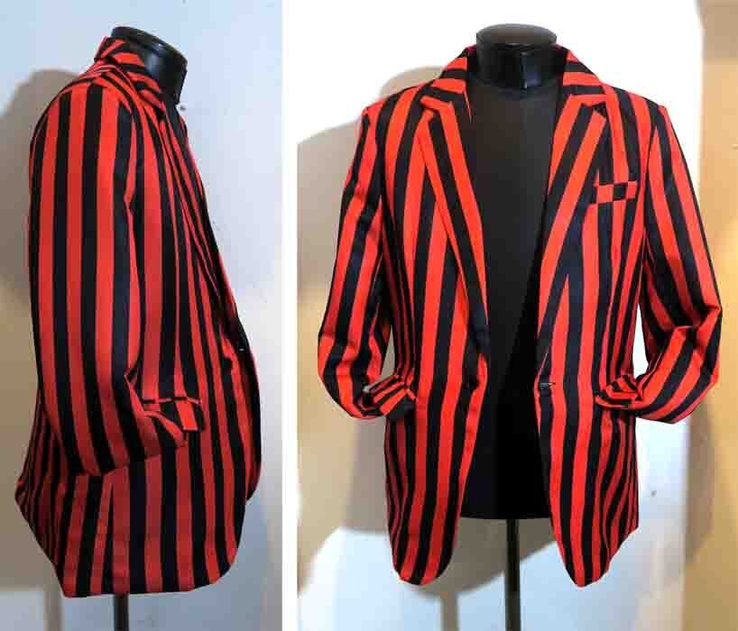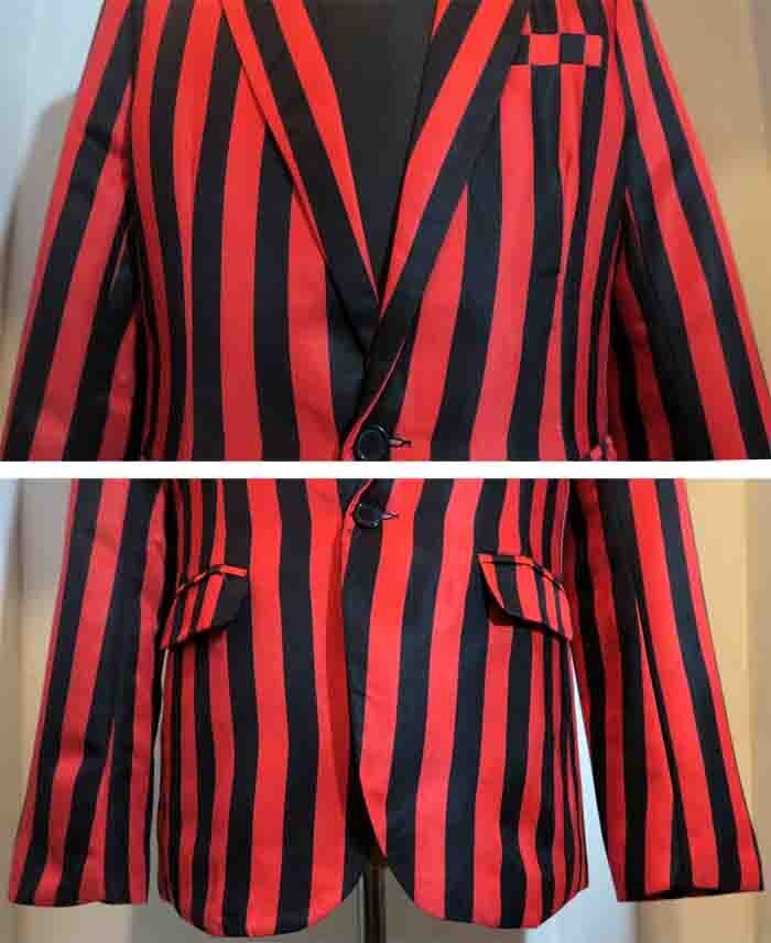新品 Lサイズ テーラードジャケット ストライプ 赤 黒 3237 2608 メンズ ブレザー レッド ブラック ステージ衣装 パンク ロック ロカビリー