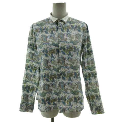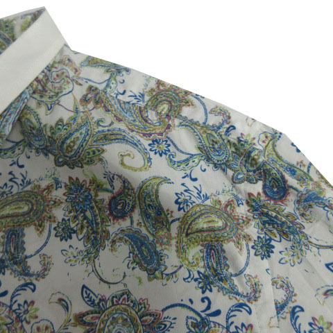 【仕様】シャツ ダブルカラー 長袖 ペイズリー柄 フロントボタン留め 品番02-82IT01