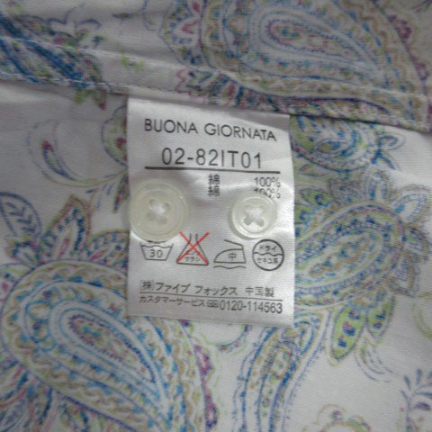 ボナジョルナータ BUONA GIORNATA シャツ ダブルカラー 長袖 コットン ペイズリー柄 ホワイト 白 マルチカラー S レディース