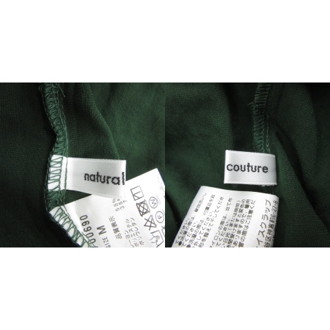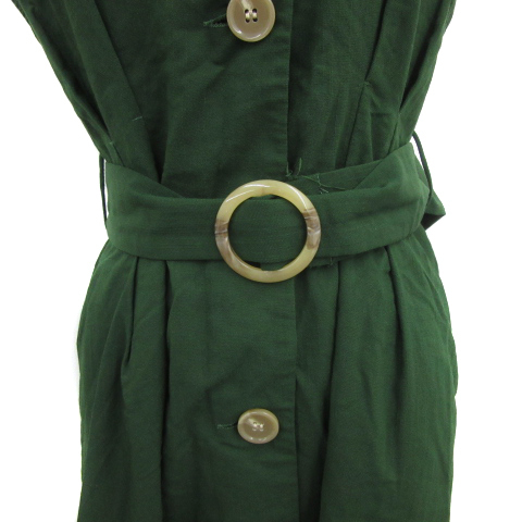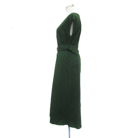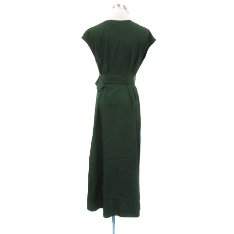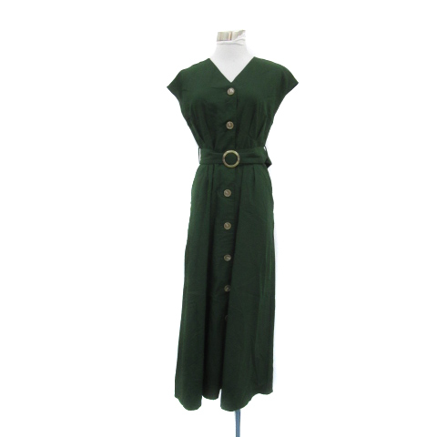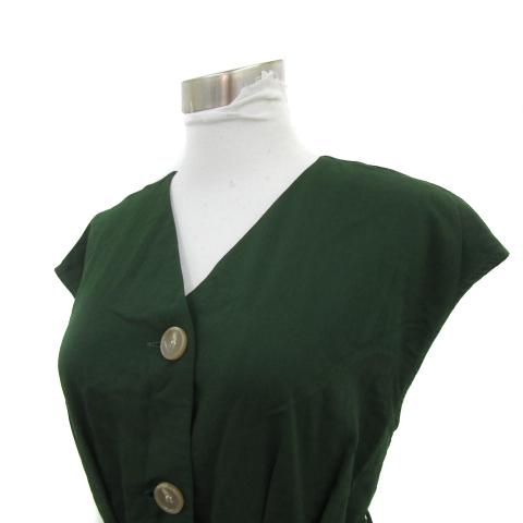 ナイスクラップ ナチュラルクチュール ワンピース ノースリーブ フレンチスリーブ Vネック 無地 ウエストベルト付き M 緑 レディース