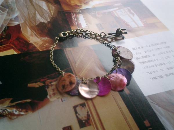 巴里のお針子さん・・シリーズです♪物語を秘めた素材を集めてロマンチックなブレスレットです♪ダークレッドやモーヴピンク・深い紫などシックなお色でまとめて大人の表情です♪12ミリのシェルのブレスレットは合わせやすいキュートなデザインです♪長さは16センチ+アジャスター6センチで最長22センチ位です♪♪お揃いのブレスレットやネックレスも出品しています♪シンプルで飽きのこないいつまでも着けられるデザインを考えて作りました!ハンドメイドをご理解頂いてノークレーム、ノーリターンでお願いします