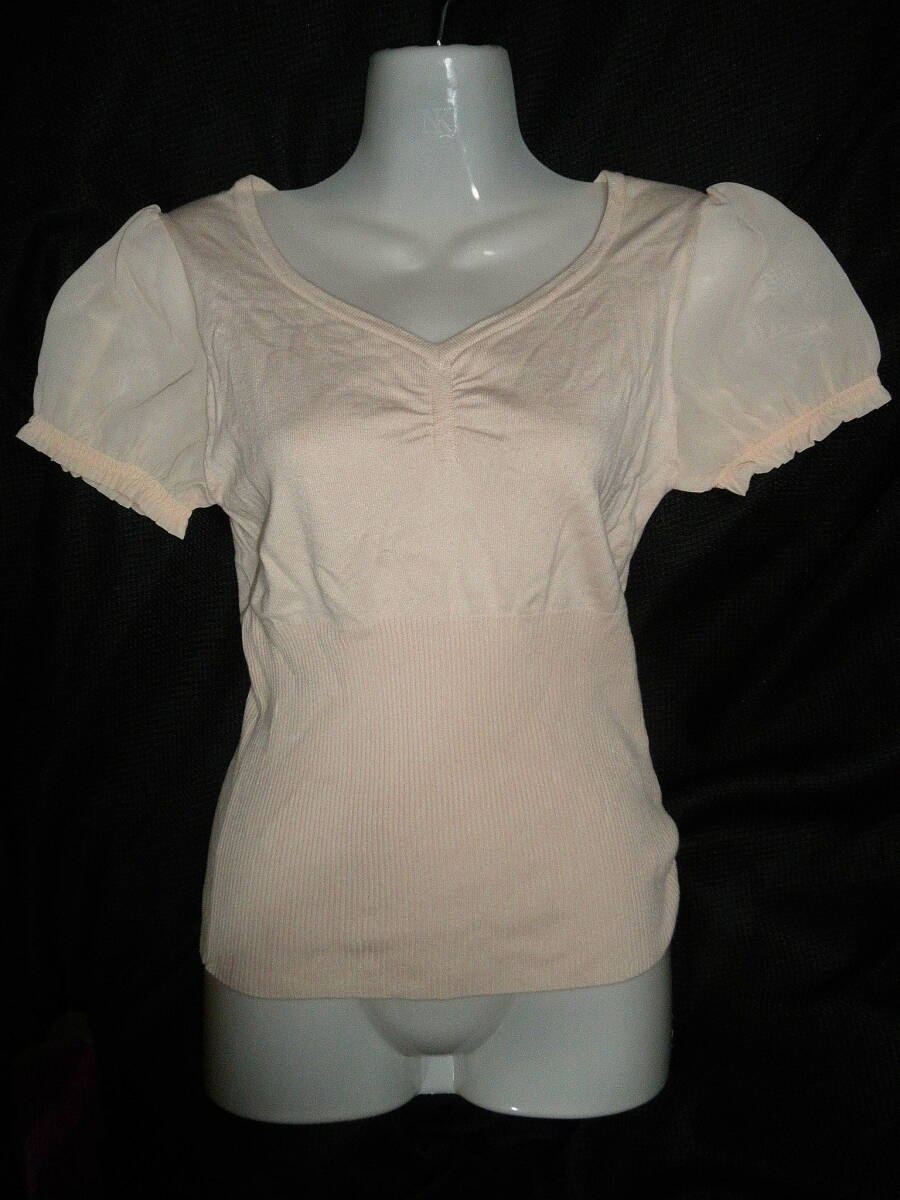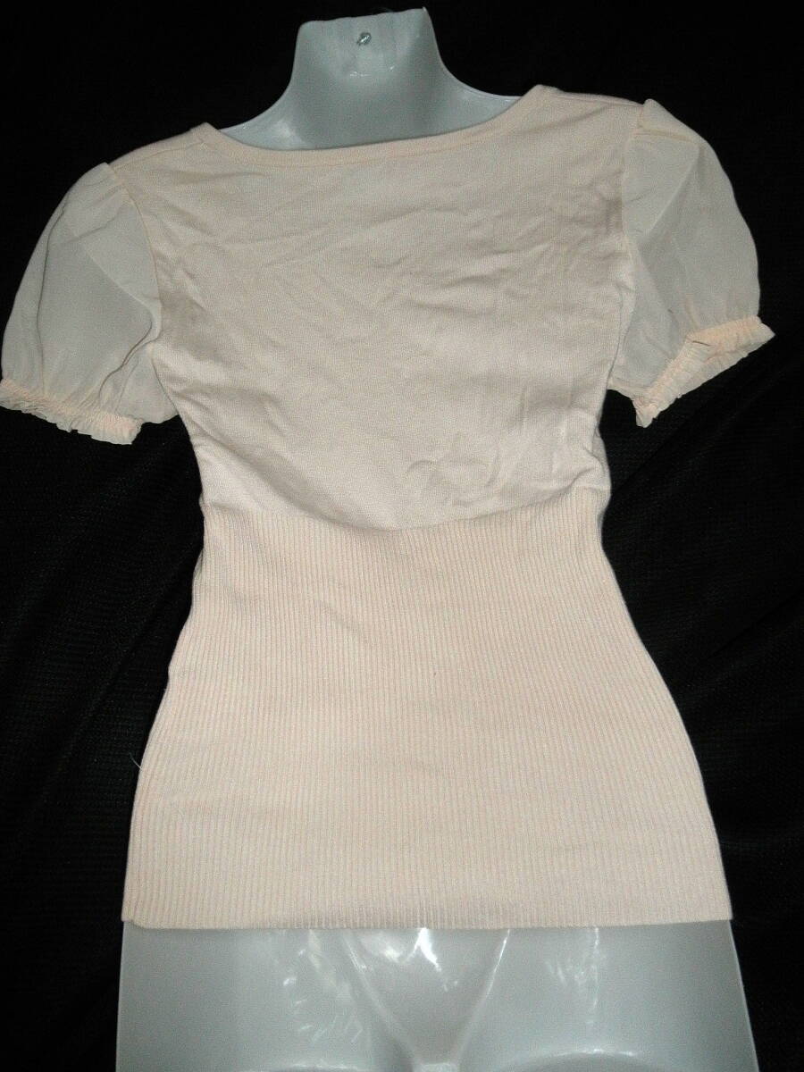 即決 新品 ペイトンプレイス 上品 半袖ニット 袖シフォン ファイブフォックス社 Mサイズ ベージュピンク 未使用 保管品