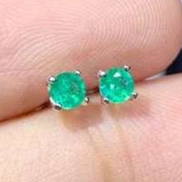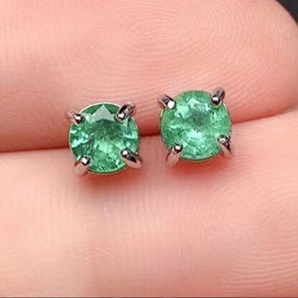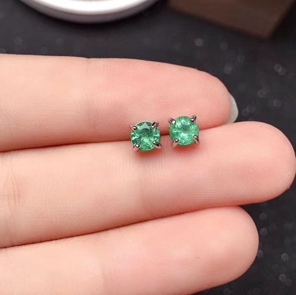 女性用ナチュラルエメラルドピアス、3×3mm、925シルバージュエリー、女性へのギフト