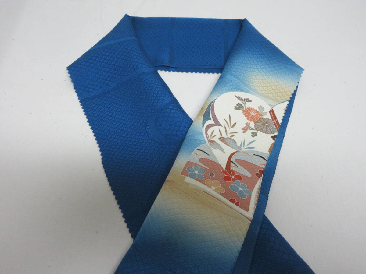 〇柄半襟 お人形 細工つるし飾り パッチワーク 藍色地 ト 106×18.5