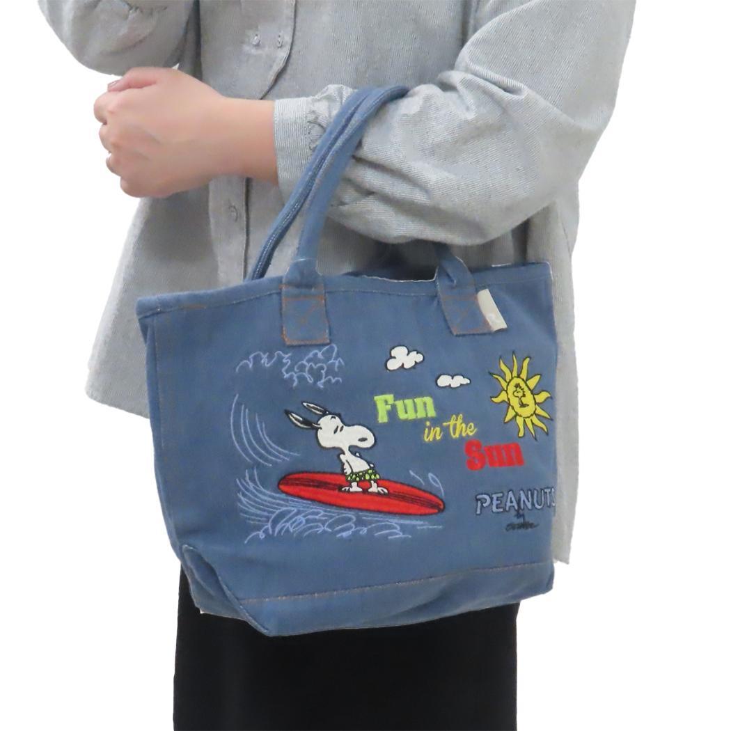 スヌーピー ミニバッグ IP.デリ.シシュウ.Peanuts-0B デニムバッグ Sun ピーナッツ ルートート 手提げかばん キ