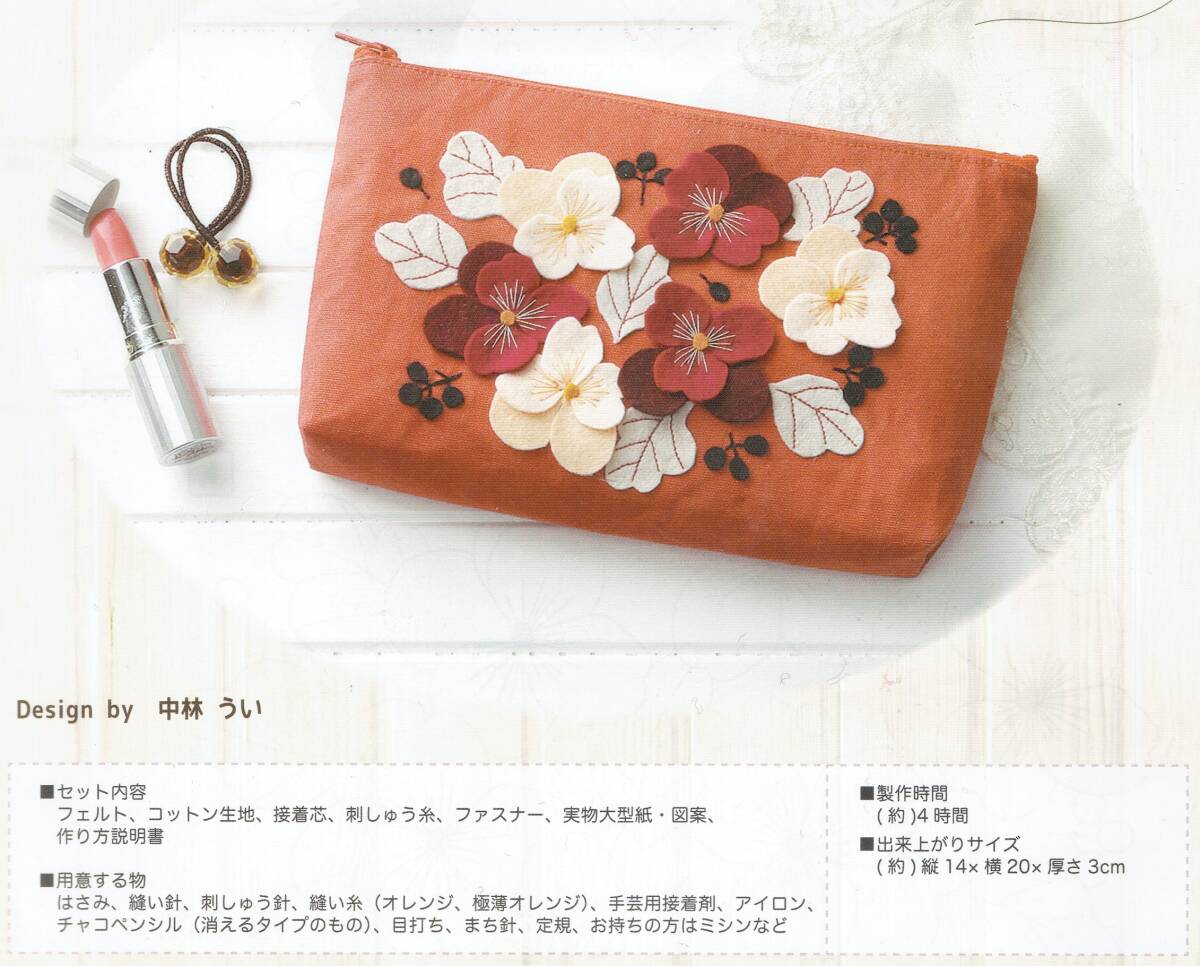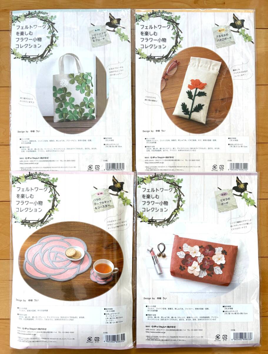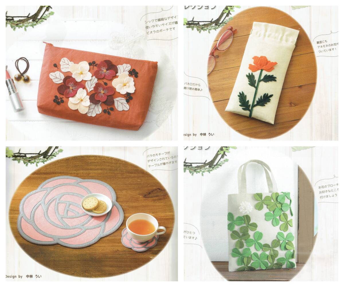 ◆フェルトワークを楽しむフラワー小物コレクション◆キット◆4種類セット◆ミニバッグ◆ポーチ◆中林うい◆刺しゅう◆刺繍