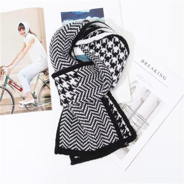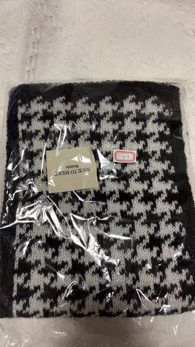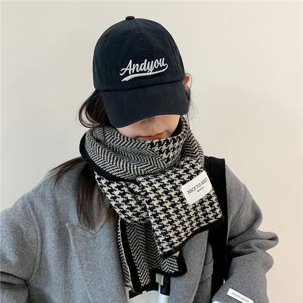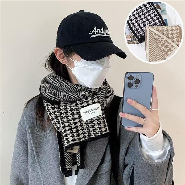 マフラー レディース ストール 千鳥格子 両面 使える 肌触り良い 防風 防寒 暖かい かわいい 巻き物 男女兼用(色: ブラック)