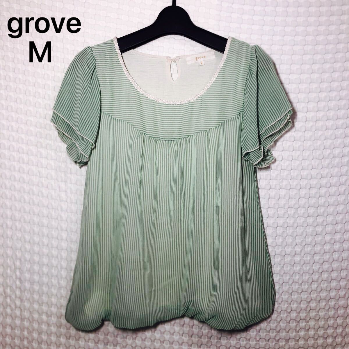 grove グローブ ブラウス シャツ 半袖シャツ フリル M 古着
