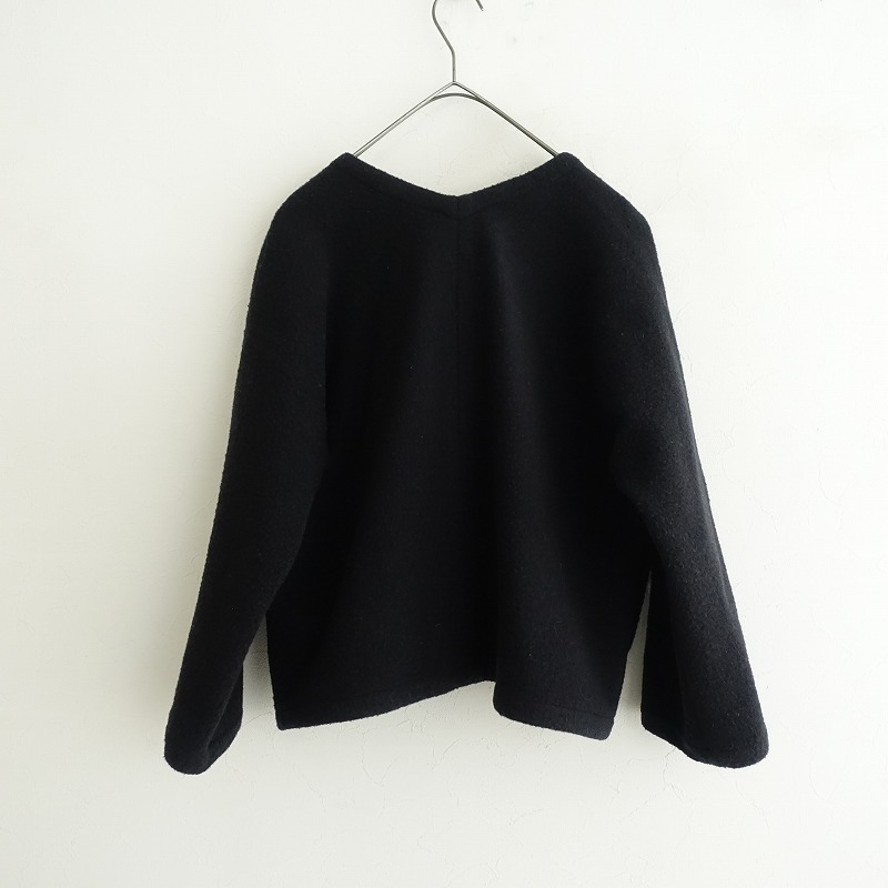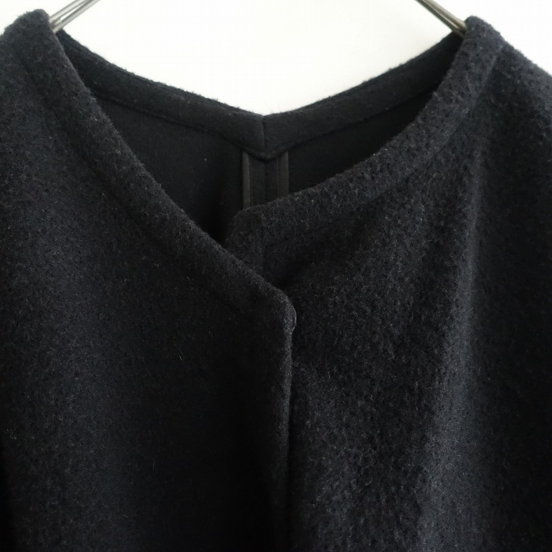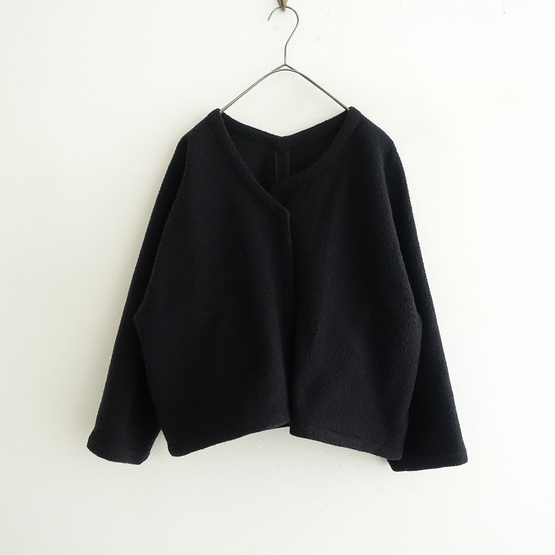 Lin francais d’antanのウールジャケットです。カラーはブラック、起毛がかった素材で、フロントスナップボタンです。前両腰にポケットがあり、裏地はございません。 |