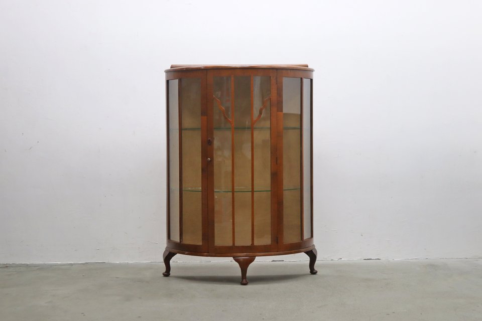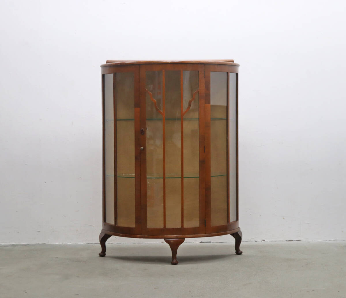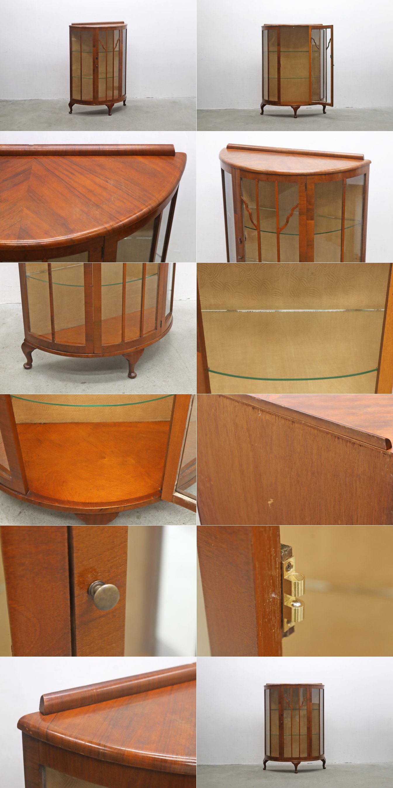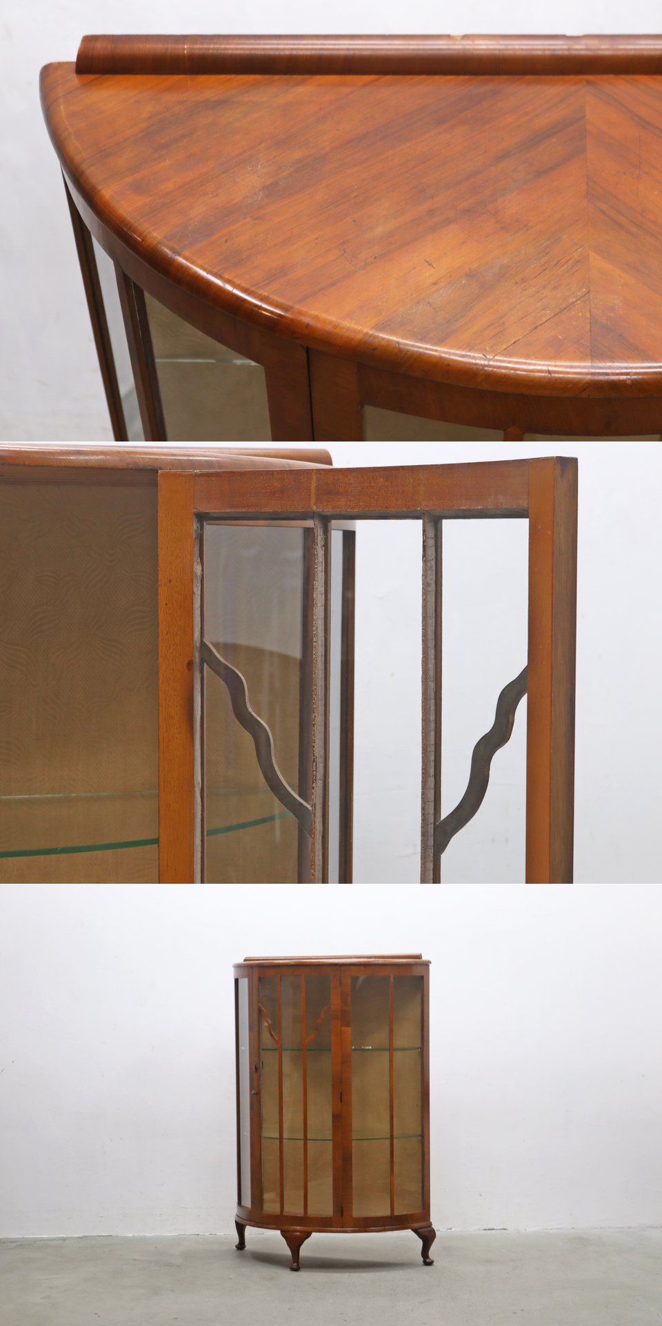 イギリス ヴィンテージ ガラス ラウンド キャビネット 飾り棚 食器棚 ラック サイドボード 収納 英国 PBT25185