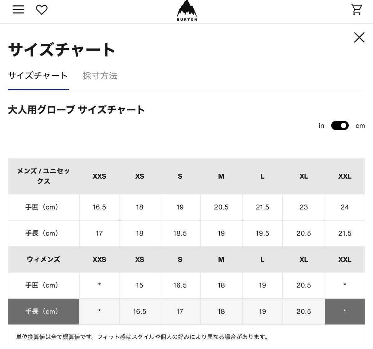 詳しくは画像7、バートン公式サイトのサイズチャートをご確認ください。
