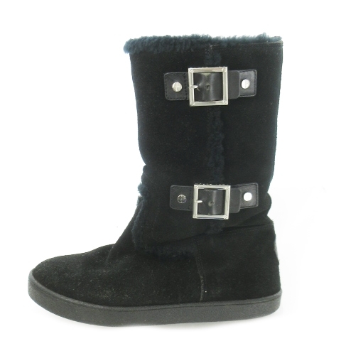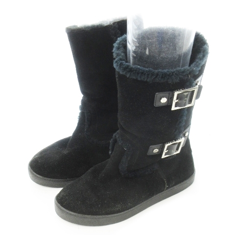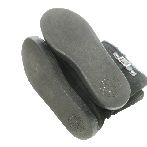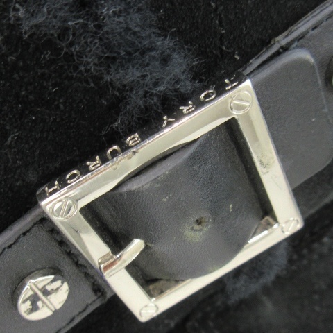 トリーバーチ TORY BURCH ムートンブーツ ミドル フラット ボア ベルト 黒 ブラック /AO11 ■GY11 レディース