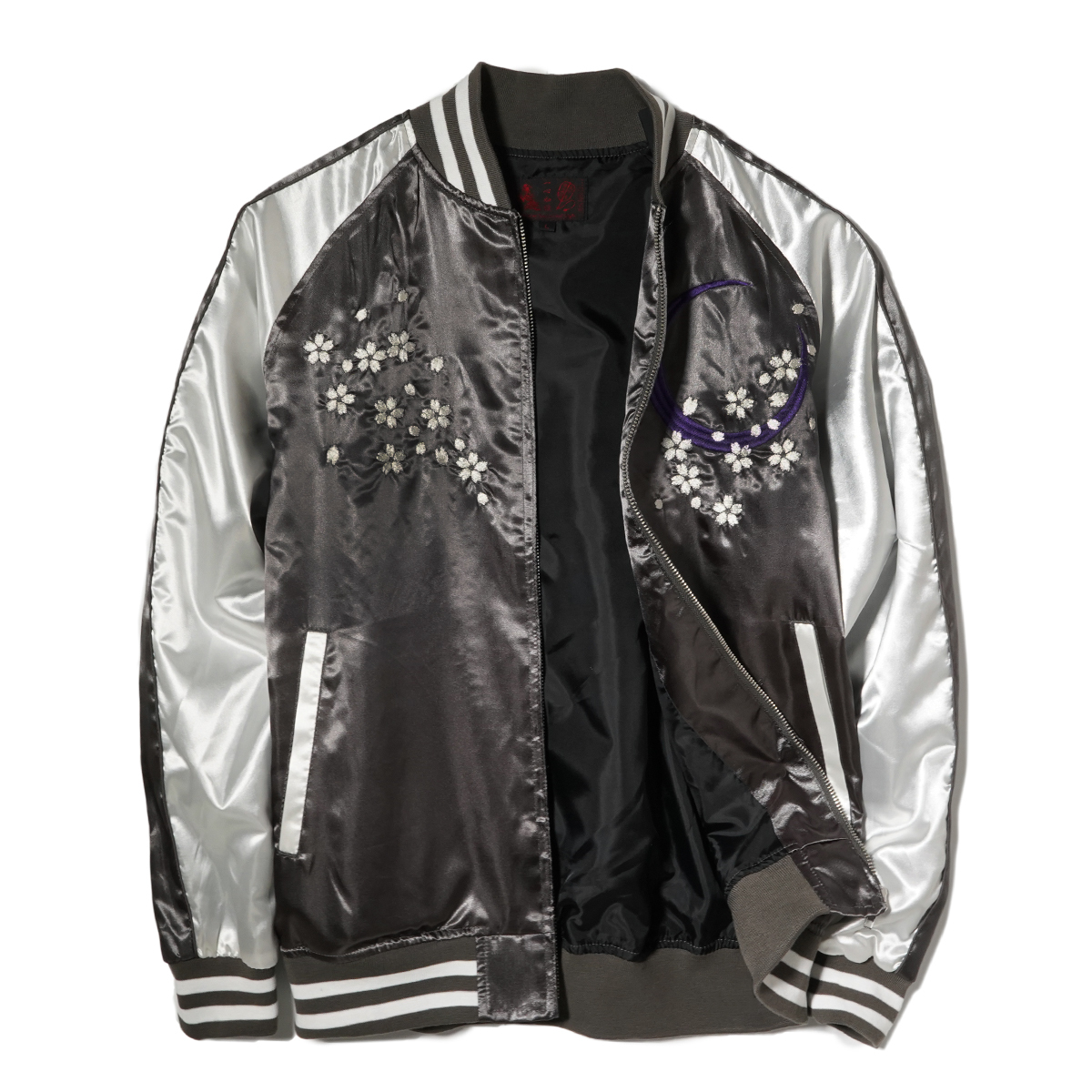 さらりと羽織れるストリート定番スカジャン。 程よい厚さとサラッとした高級感のあるサテン生地、 フロントとバックに施された丁寧な刺繍使いがポイントで、アメカジでは定番のスカジャンを現代っぽくタイトなサイズ感に。 ボディはカラー配色切り替えで仕上げた大人っぽさのあるデザインなど凝ったディティール。 これからの時期に最適、ライトアウターとして活躍してくれる1着。 左胸内側裏ポケットあり、中綿ナシ。 【カラー◆Color】 風雷神 / GRAY 【サイズ◆Size】 S 【寸法◆Size】 S size : 身幅51cm 肩幅(ラグランにより数値なし) 着丈59cm 裄丈80cm M size : 身幅53cm 肩幅(ラグランにより数値なし) 着丈61cm 裄丈82cm L size : 身幅55cm 肩幅(ラグランにより数値なし) 着丈63cm 裄丈84cm XL size : 身幅57cm 肩幅(ラグランにより数値なし) 着丈65cm 裄丈86cm 【素材◆Material】 ポリエステル 100% ※現物に近いカラーに撮影しておりますがモニターカラー設定、または印象によりカラー誤差があることをご理解よろしくお願い致します。 | ||