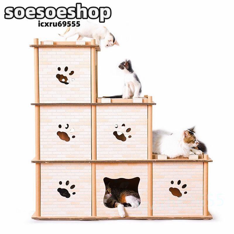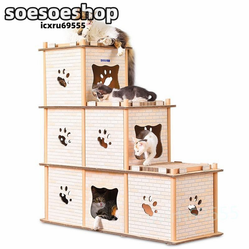 特売★変形 三段階猫部屋 猫タワー 段ボール猫用ボード 多くの猫が一緒に遊べる(内部に猫用ボード9個入れております)