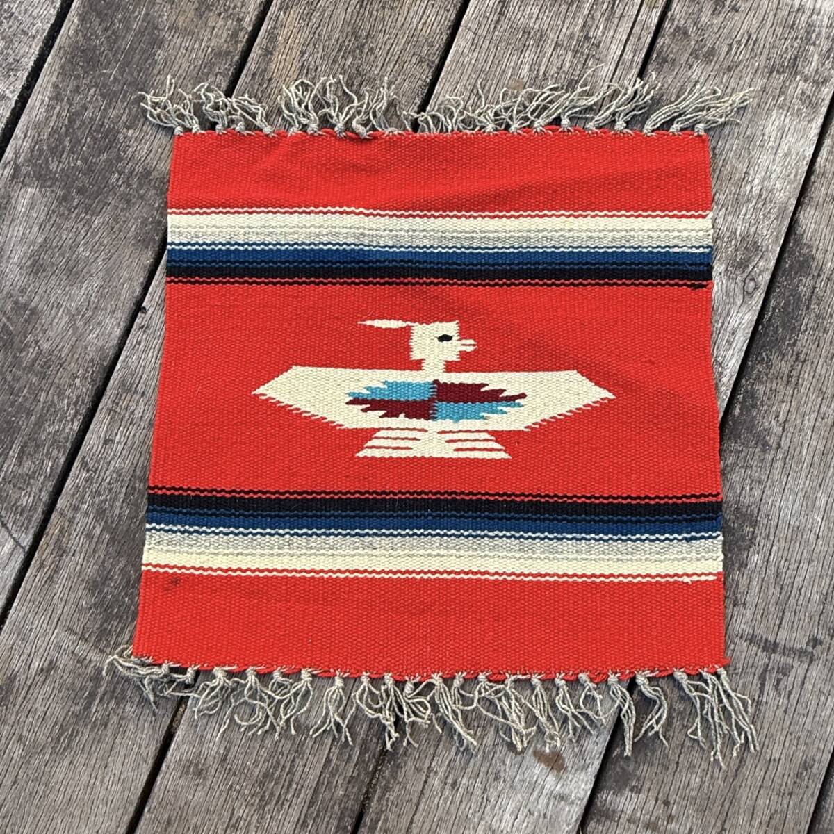 【Vintage】~1970s Small Rug Mat ラグ マット サンダーバード チマヨ ネイティブアメリカン インディアン ヴィンテージ アンティーク C