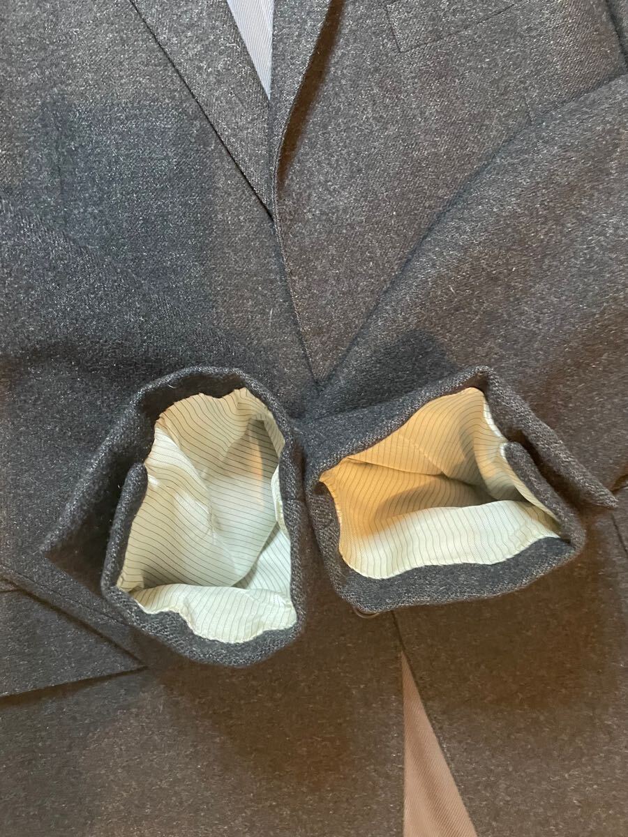 使用感ありますがまだまだ活躍できる状態です。左手袖ボタンに欠けあり。内ポケット端にスレあり。