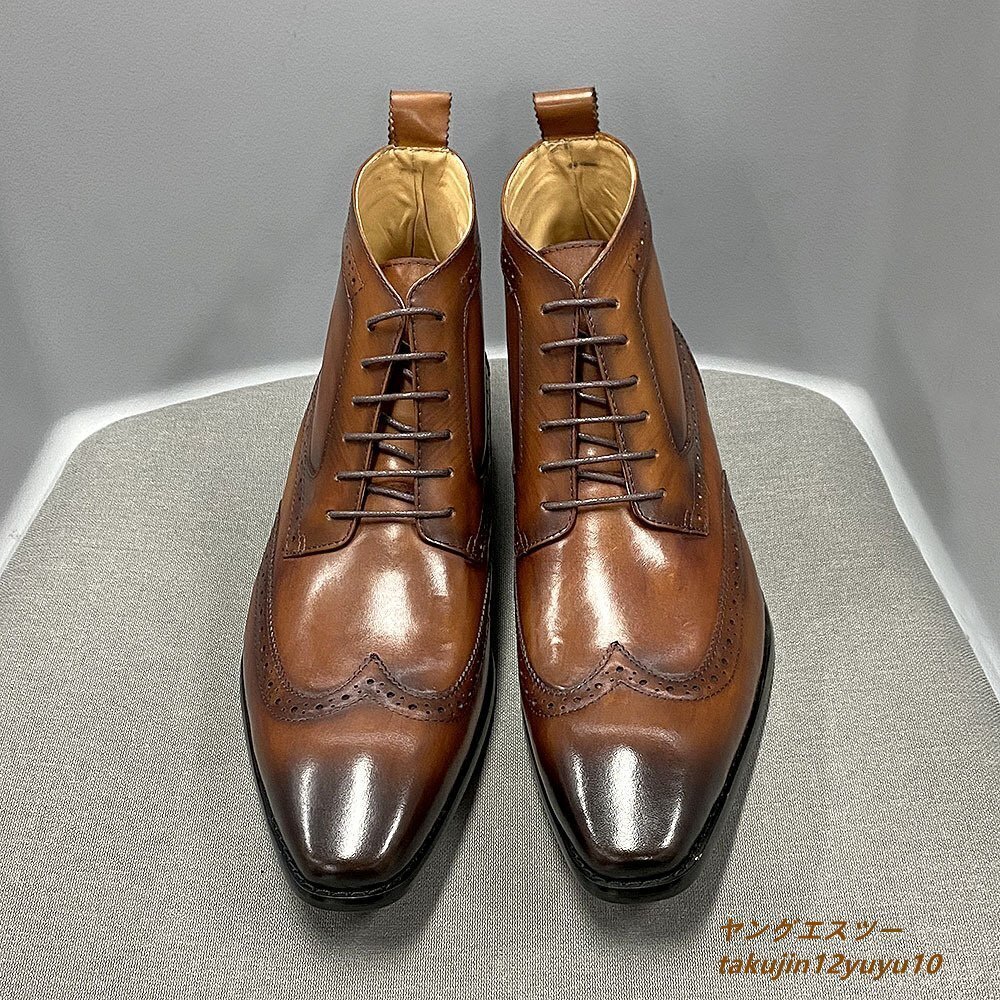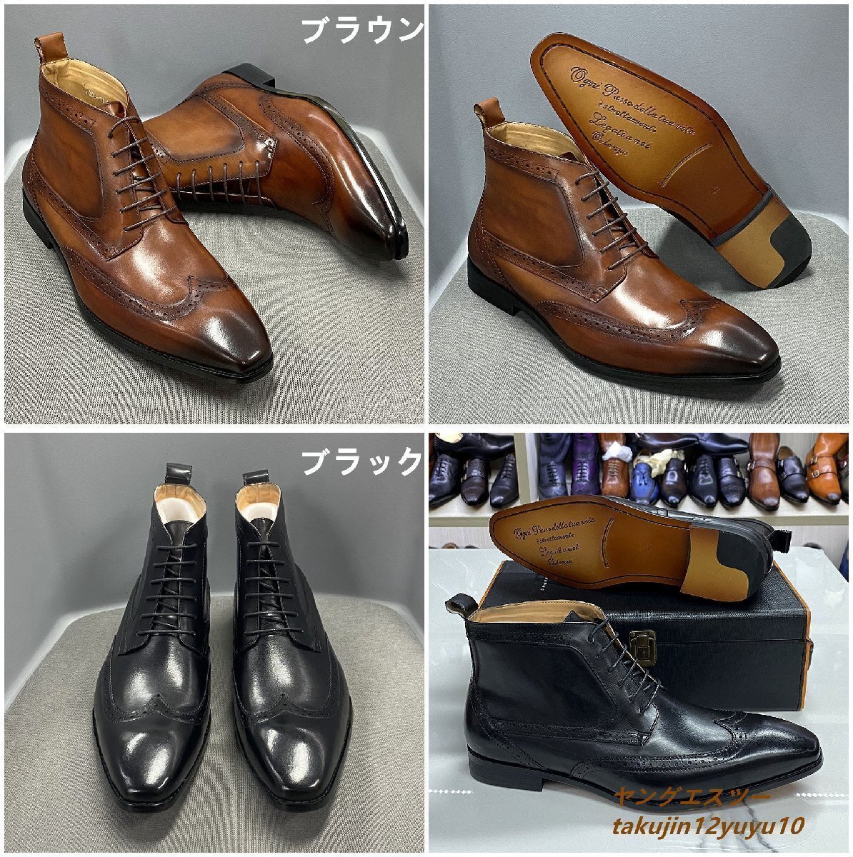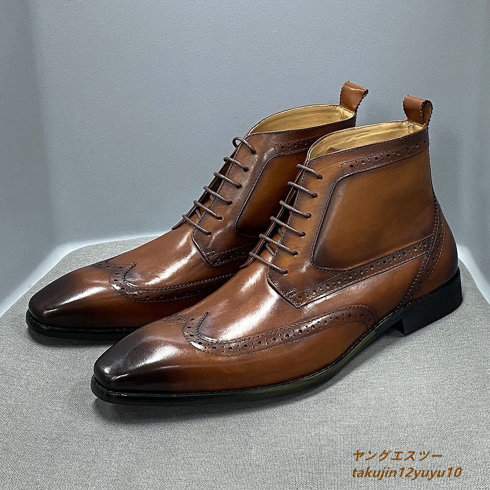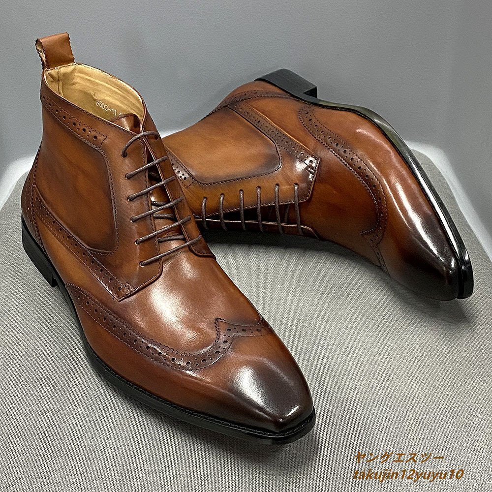 定価11万 新品 レザーブーツ 最高級メンズブーツ ショートブーツ 牛革 マーティンブーツ 本革エンジニアブーツ 職人手作り ブラウン 27.5cm